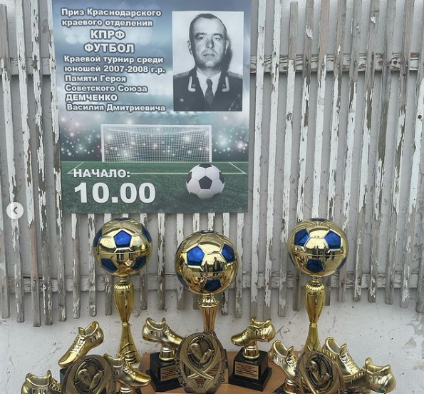 В станице Андреевской Калининского района в День защиты детей состоялся юношеский турнир по футболу, посвященный памяти Героя Советского Союза В.Д. Демченко. Призы были учреждены Краснодарским краевым отделением КПРФ.