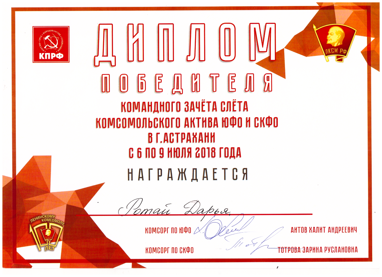 Комсомольский слёт в Астрахани – это три дня продуктивной работы. Комсомольцы познакомились друг с другом, узнали много нового, сплочённо работали в командах. И это, конечно, будет помогать им в совместной борьбе за общество социализма и справедливости.