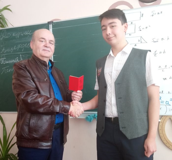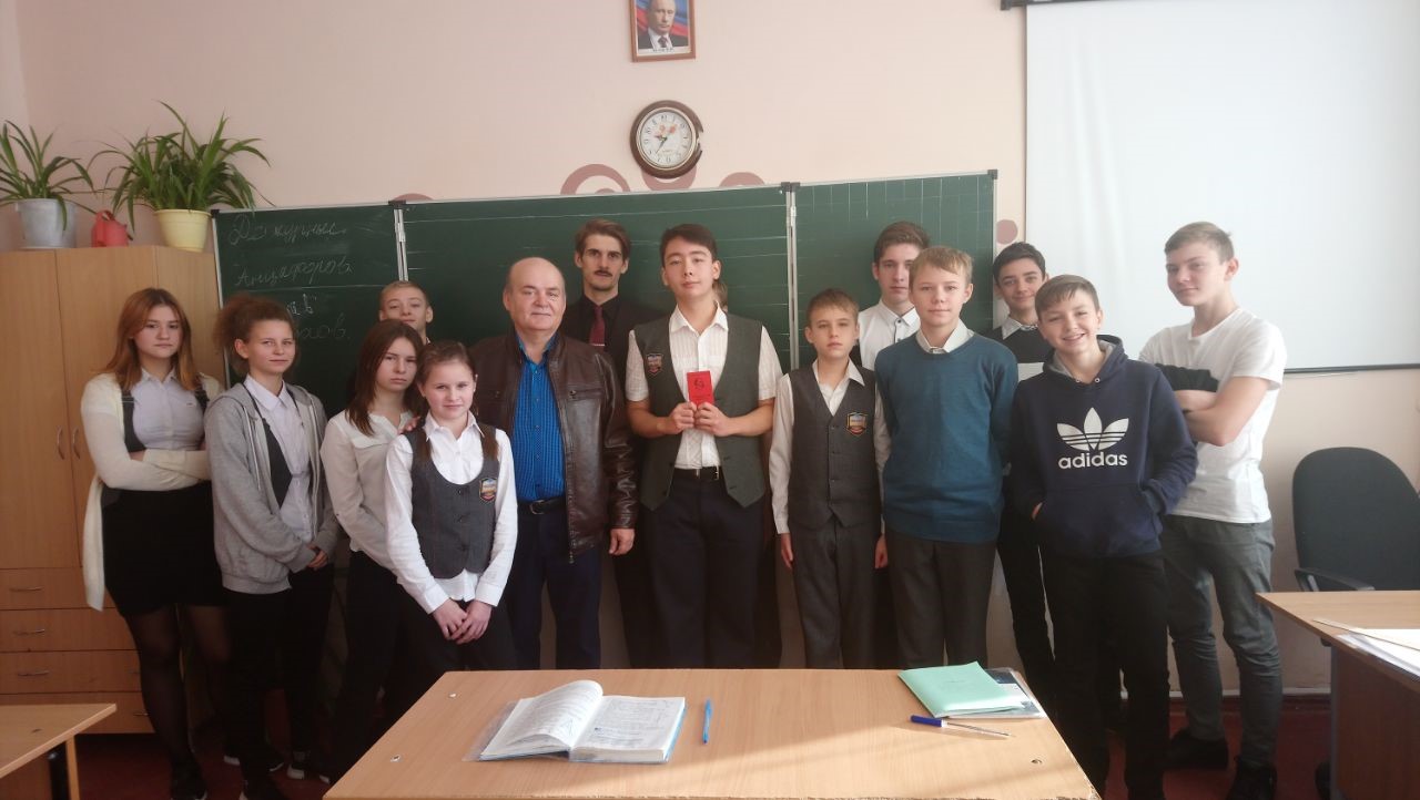 Депутат-коммунист рассказал школьникам о 100-летнем юбилее Великого Октября и о приближаются столетии Ленинского Комсомола. По просьбе краевого Комитета ЛКСМ РФ Н.В. Боровков вручил одному из учеников – Сергею О – комсомольский билет.