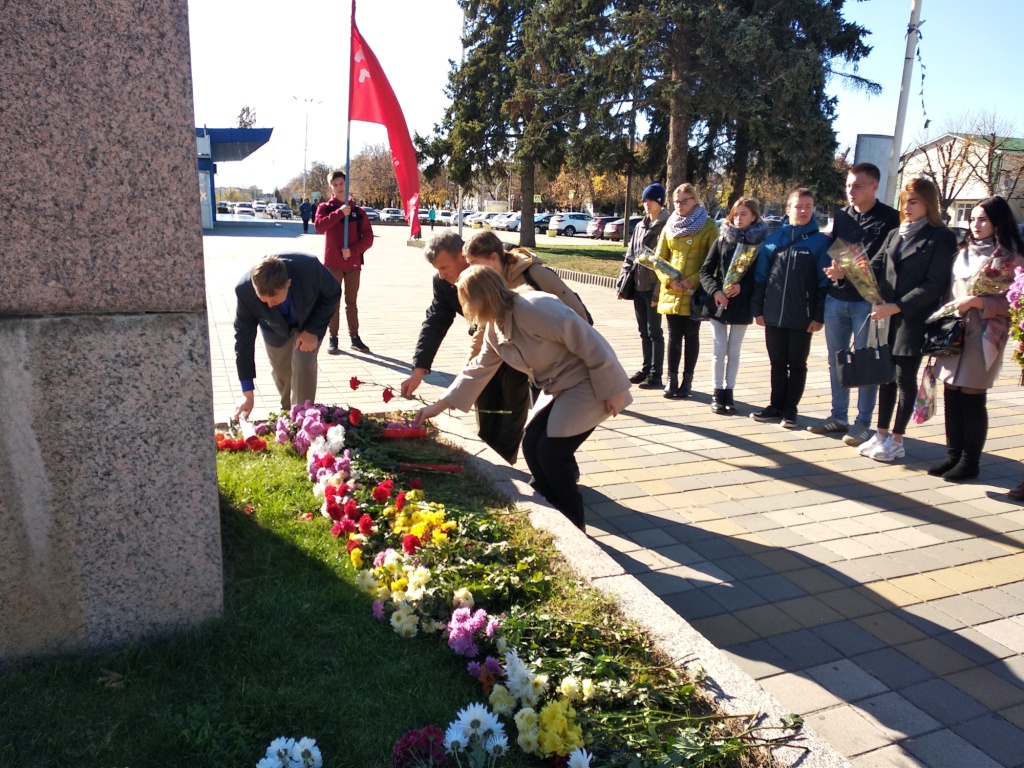 Первым пунктом в маршруте коммунистов и комсомольцев стал Мемориал Павшим Воинам, где делегация возложила венок и живые цветы к Вечному Огню. А первый секретарь райкома партии, депутат районного Совета А.М. Лымарь напомнил молодым каневчанам об истории праздника Октября и его значении в истории нашей страны и всего мира.
