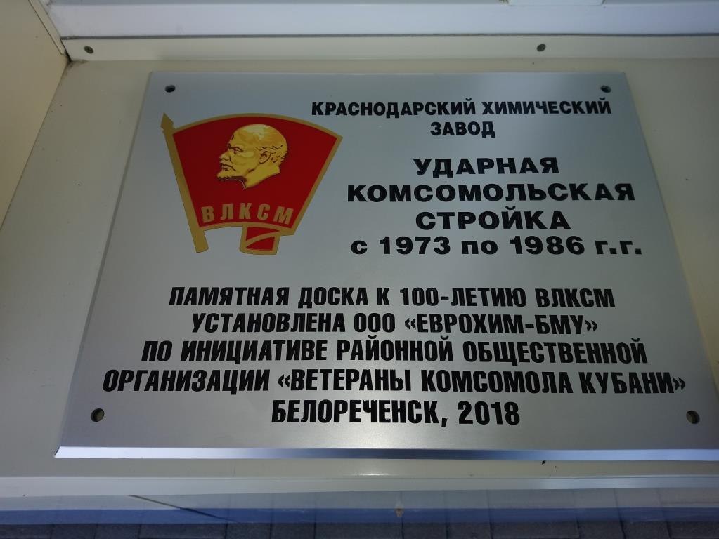 14.30. Н.В. Боровков и О.Н. Беспалова приняли участие в открытии Мемориальной доски, установленной на фасаде здания Химзавода и напоминающей о том, что здесь проходила Ударная комсомольская стройка.
