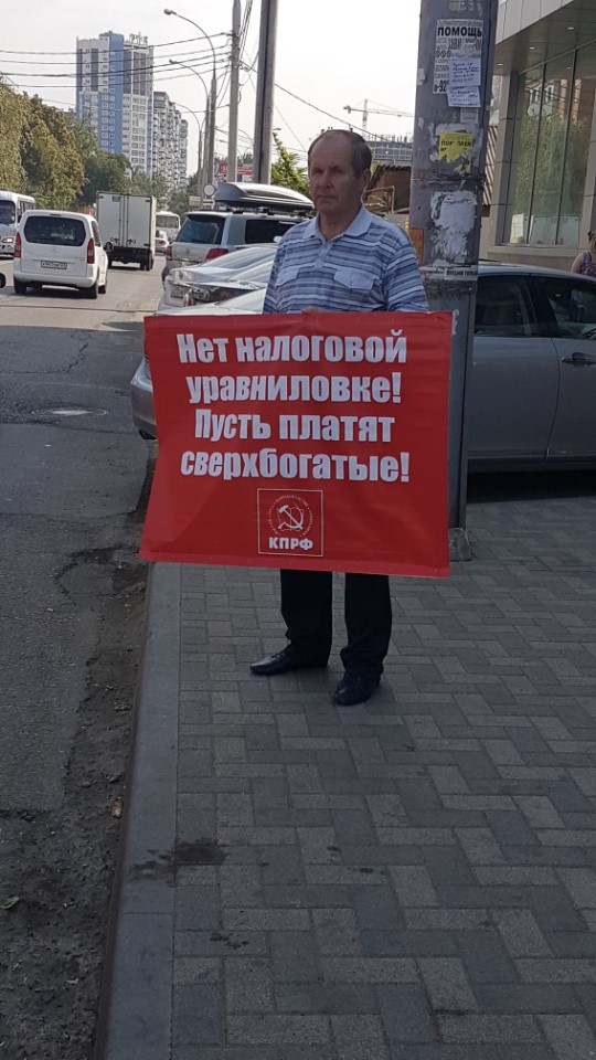 Вместе с ним на публичное мероприятие вышли активисты Сталинско-Прикубанского окружного отделения КПРФ города Краснодара.
