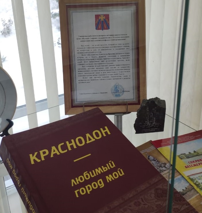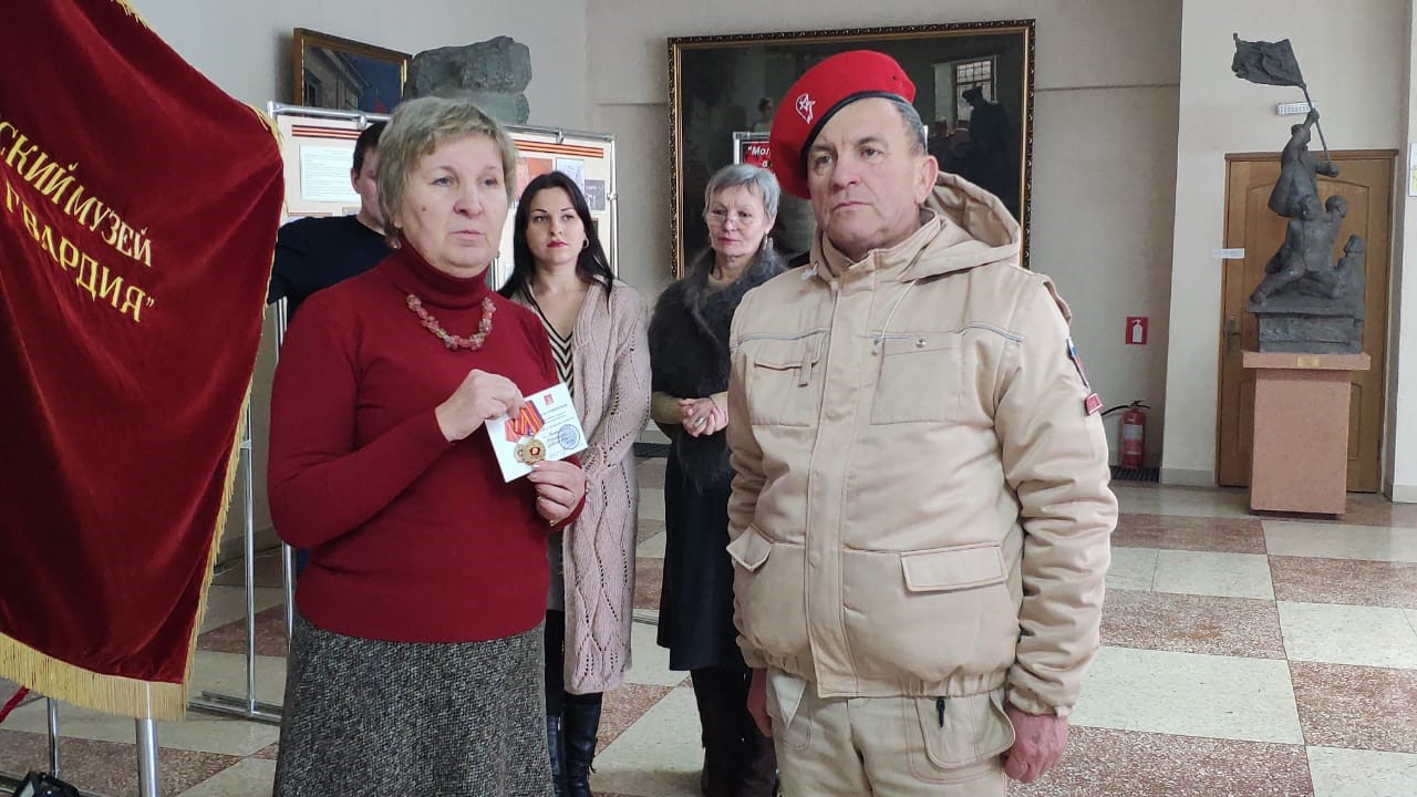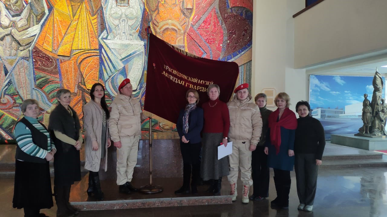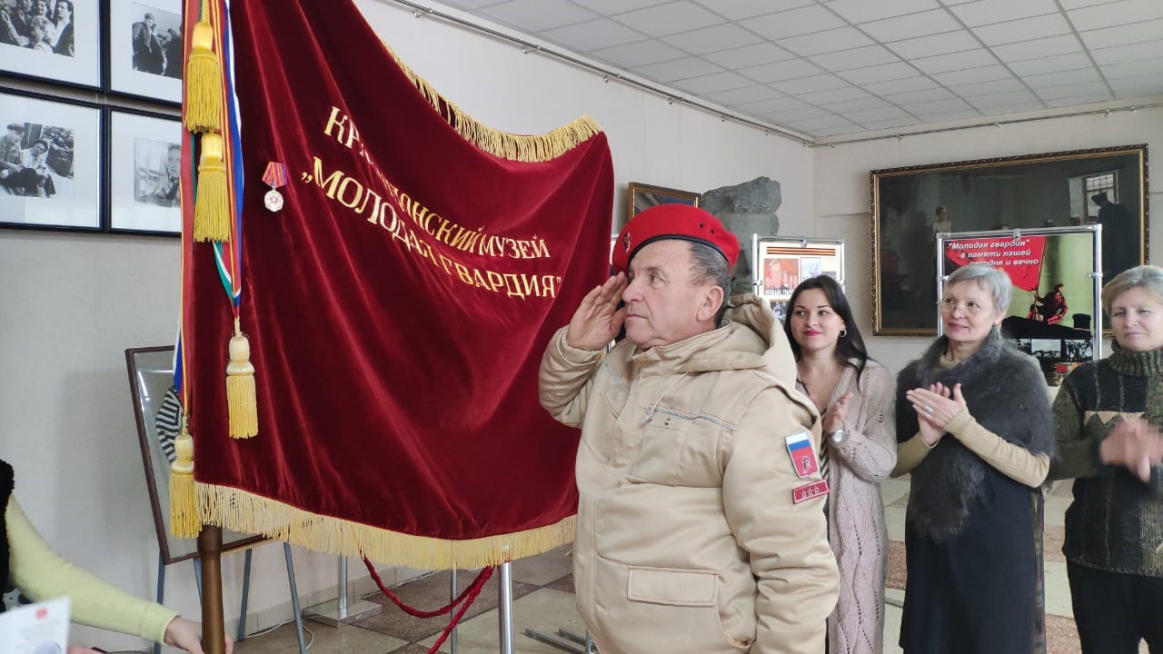 Директор музея, заслуженный работник культуры ЛНР Н.И. Николаенко организовала в большом зале вынос знамени Молодой Гвардии, и А.М. Лымарь торжественно прикрепил к нему памятный орден «100 лет ВЛКСМ». Кроме того, в музей было передано благодарственное письмо международного оргкомитета по празднованию юбилея Ленинского Комсомола.