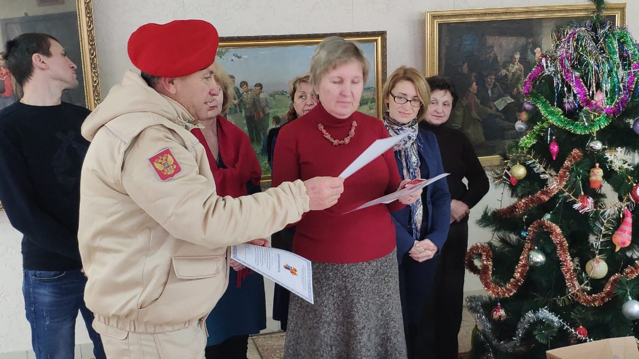 Затем у праздничной новогодней елки были переданы продукты питания и подарки для детей, оказавшихся в трудной жизненной ситуации. А в обратный путь отправились благодарственные письма – для всех каневчан, которые помогали снарядить экспедицию.