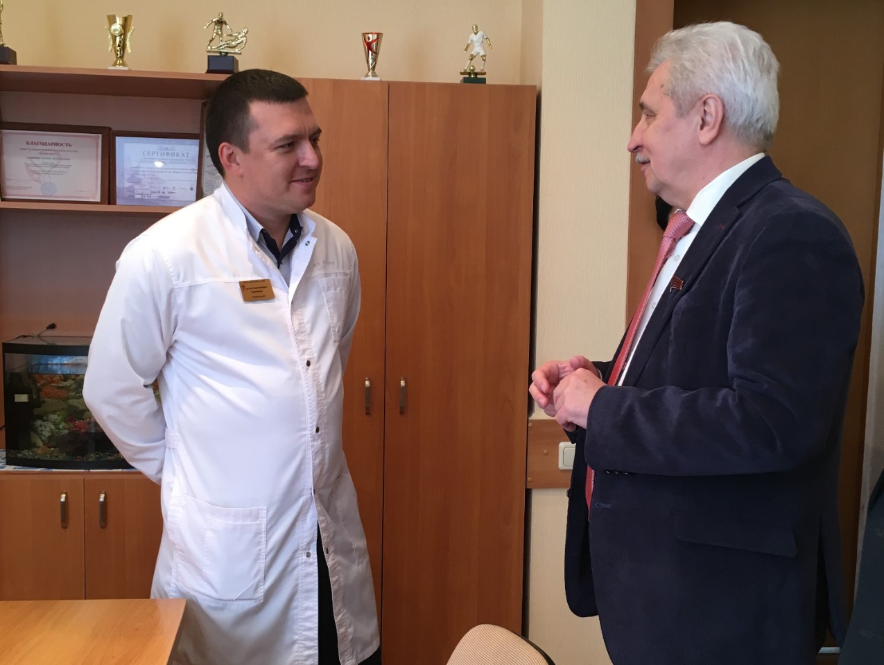Следующая встреча прошла в центральной районной больнице – с коллективом медицинских работников. Н.И. Осадчий, являющийся членом комитета Госдумы по охране здоровья, проинформировал медиков об основных направлениях работы комитета: медицинское образование и кадровое обеспечение здравоохранения, информатизация, контроль реализации государственных программ в отрасли.