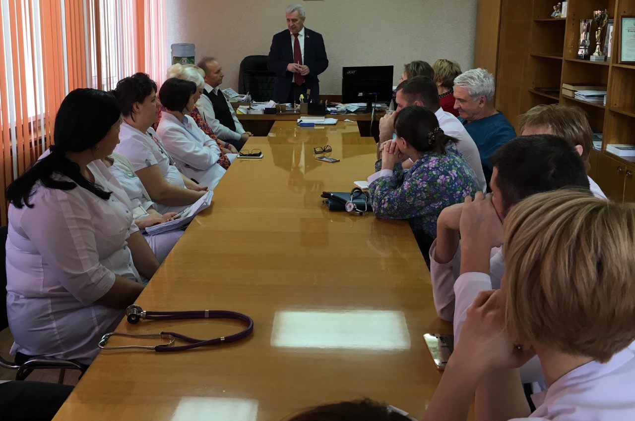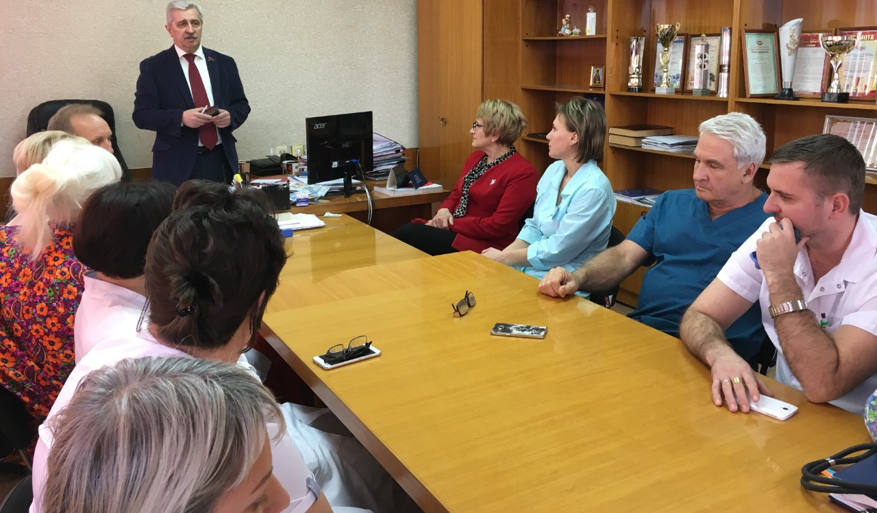 Следующая встреча – в городской больнице. Здесь Николай Осадчий рассказал представителям коллектива медицинских работников о главных направлениях деятельности Комитета Госдумы по охране здоровья, о своем участии в разработке и внесении ряда законодательных инициатив. Наибольший интерес вызвали проблемы подготовки медицинских кадров, реализации программы «Земский доктор», модернизации оборудования, повышения зарплаты, а также финансирования системы здравоохранения. Поддержку участников встречи получила, в частности, постановка депутатом вопроса о необходимости совершенствования механизма обязательного медицинского страхования, особенно – деятельности страховых медицинских организаций, вплоть до возможного их исключения из системы.