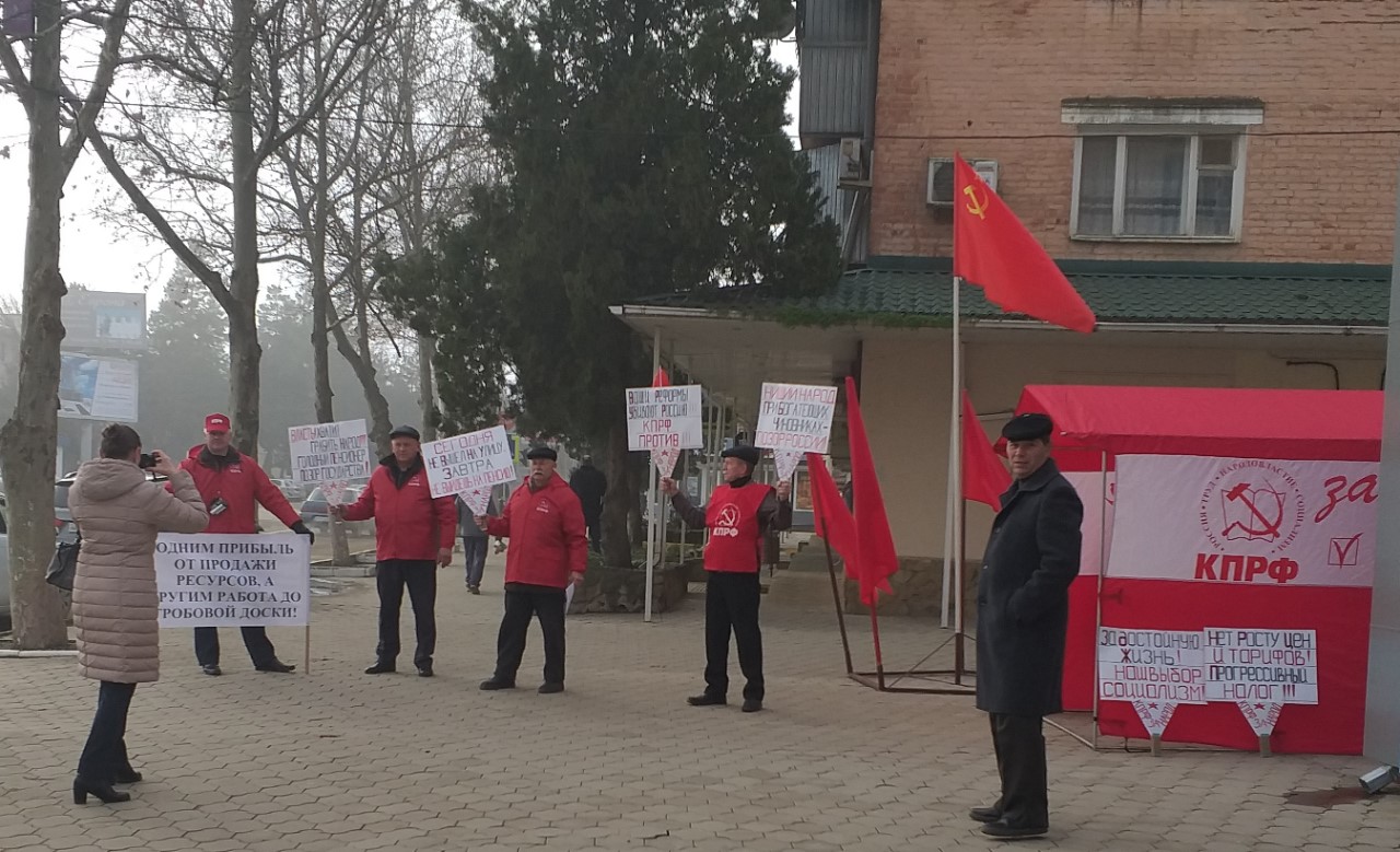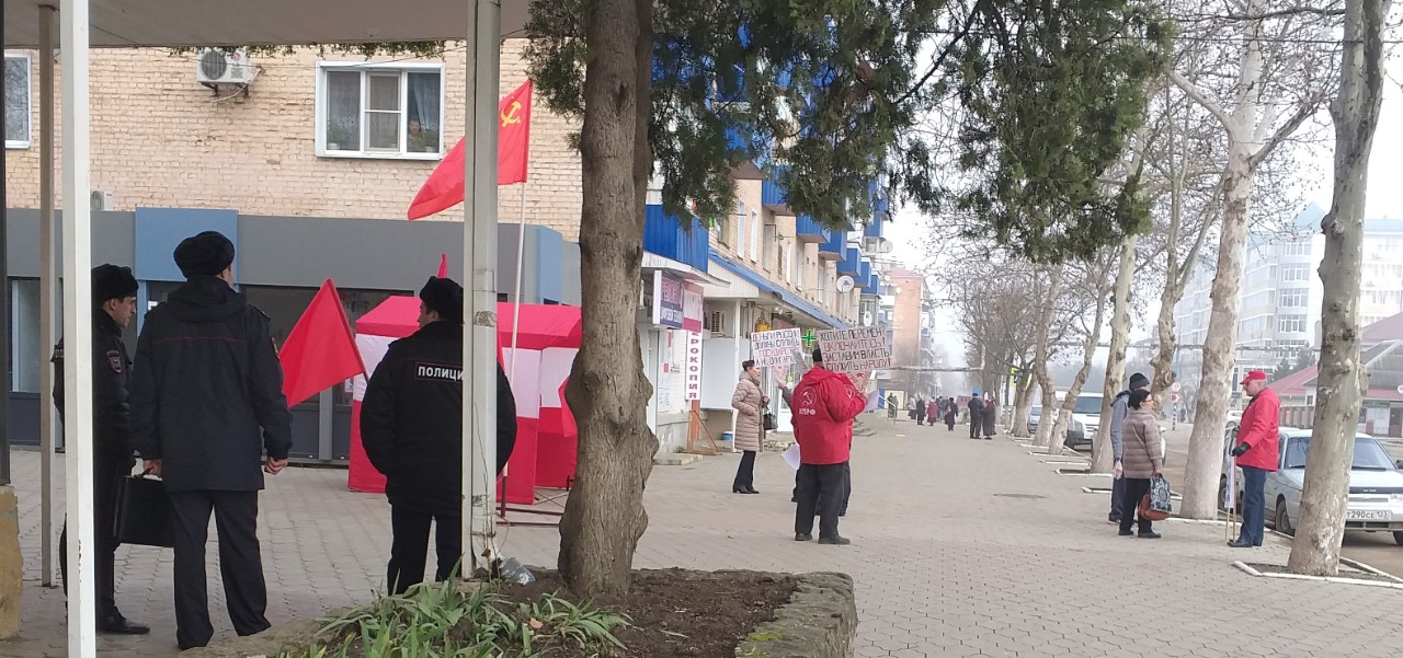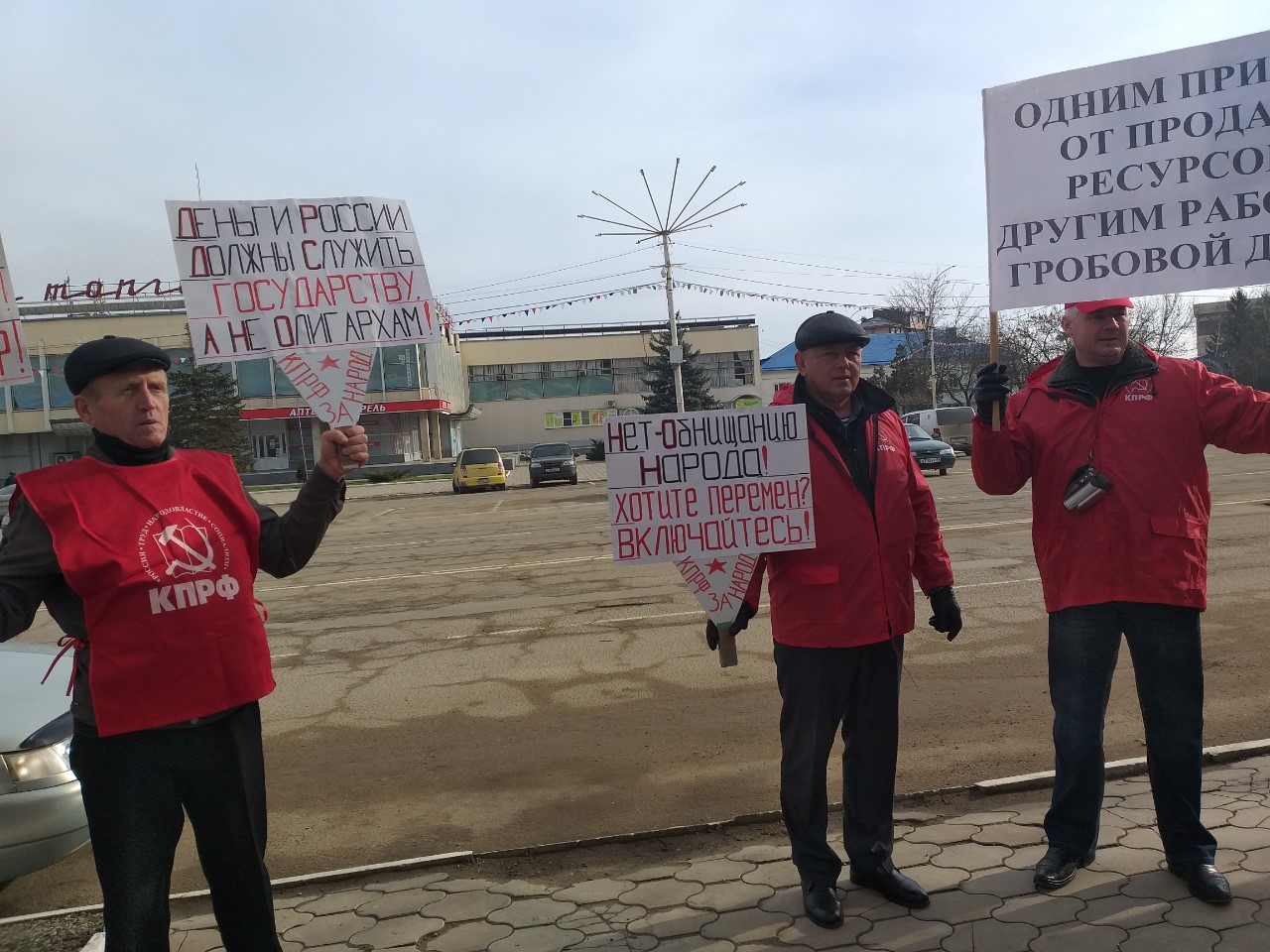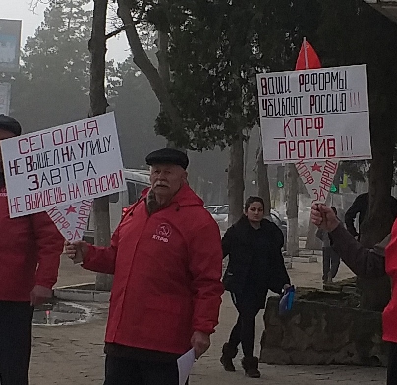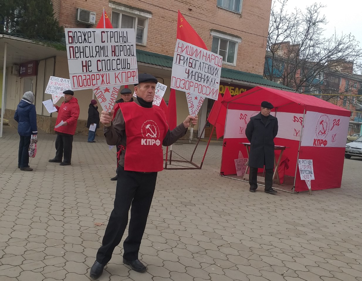 Группа активистов Абинского местного отделения КПРФ провела в районном центре пикет с выражением протеста против повышения пенсионного возраста и антинародного курса правительства.