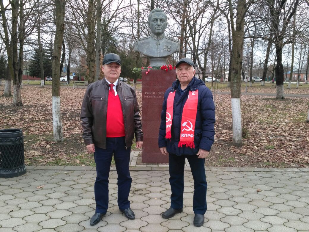 Затем в парке Победы у бюста вождю состоялся митинг, на котором выступили В.Ф. Сорокалет – второй секретарь Адыгейского рескома КПРФ, депутат парламента Адыгеи, и Н.В. Боровков – член Бюро Краснодарского крайкома КПРФ, первый секретарь Белореченского райкома партии, руководитель фракции КПРФ в районном Совете депутатов. Оба они, как и другие участники митинга, в частности, члены городского Совета ветеранов во главе со своим председателем В.Ю Головяшкиным, отмечали огромную роль И.В. Сталина в становлении, развитии и укреплении Советского государства, в Победе над фашистской Германией и милитаристской Японией. Много тёплых слов было сказано и в честь Маршала К.К. Рокосовского, которому в этот же день исполнился 121 год со дня рождения. Активисты возложили живые цветы к бюстам И.В. Сталина, К.К. Рокоссовского и других советских полководцев.
