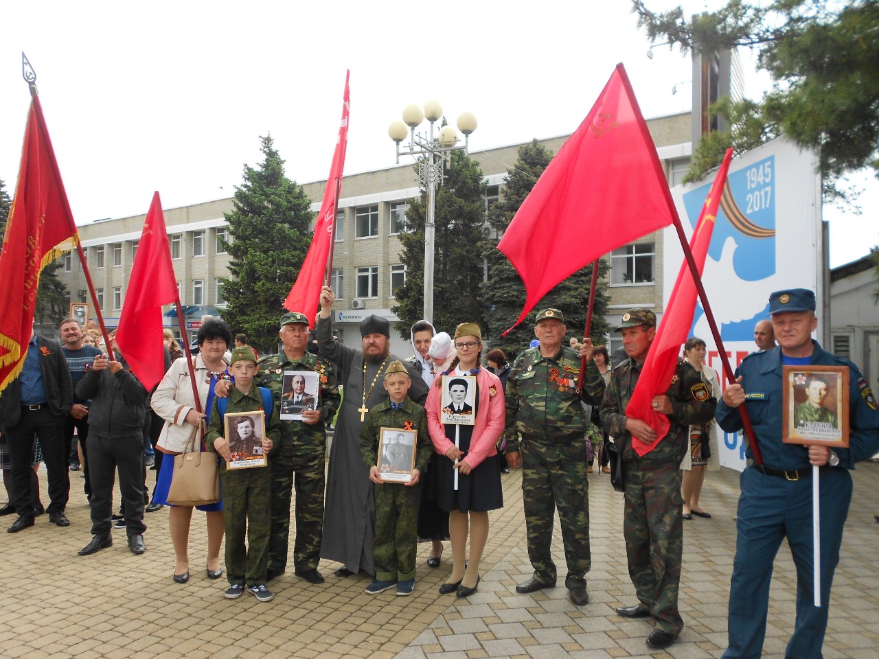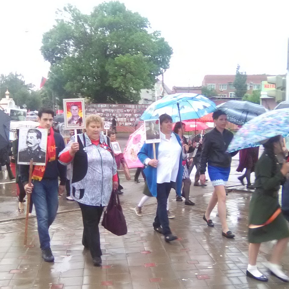 Коммунисты Тихорецка, до начала общего шествия собравшись у помещения райкома, провели короткий митинг. Было зачитано поздравление Г.А. Зюганова с Днем Победы и вручен партийный билет. Накануне тихоречане изготовили портреты Сталина, Жукова, Рокоссовского и с этими портретами Маршалов Победы, красными знаменами и флагами прошли к месту возложения цветов.