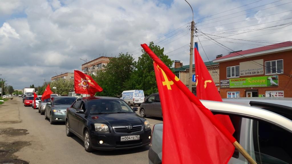 Автопробег прошел и в станице Ленинградской. Коммунисты задействовали в мероприятии порядка десяти машин, проехав с красными флагами по всей станице.