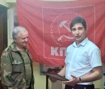 Коммунисты поздравили с юбилеем Л.В. Малого, которому вручен приветственный адрес горкома КПРФ.