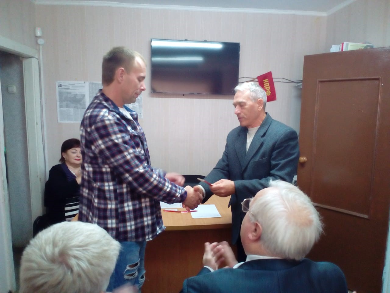 В начале работы недавно вступившему в КПРФ П. Голубкову был вручен партийный билет. Группе новых членов КПРФ партийные билеты будут вручены на митинге 7 ноября.