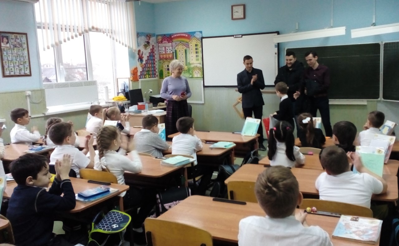 Они выполнили торжественную миссию: ученику второго класса Захару Гостеву были вручены ценные призы за II место в номинации «стихи собственного сочинения» на патриотическую тему во Всероссийском конкурсе творческих работ школьников «Молодежь о стране Октября», посвященном 100-летию Великой Октябрьской социалистической революции.