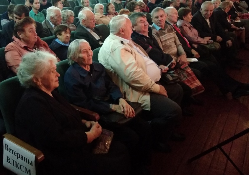 В большой зал ЦДТ «Радуга» были приглашены ветераны ВЛКСМ всех поколений, представители общественности и администрации, молодежь, в том числе – юнармейцы из организации имени дважды Героя Социалистического Труда, фронтовика, председателя колхоза «Победа» В.Ф. Резникова.