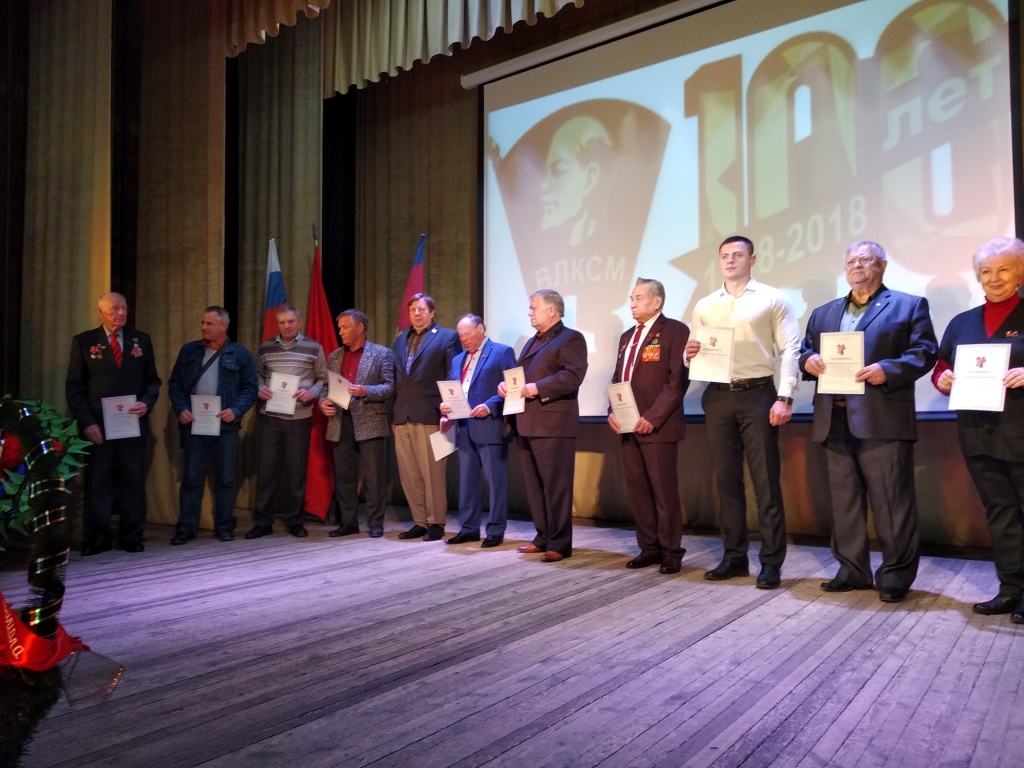 Открыл мероприятие председатель местной ячейки организации «Ветераны комсомола Кубани», первый секретарь Каневского райкома КПРФ, депутат районного Совета А.М. Лымарь. После его вступительного слова в зал торжественно были внесены флаги России и Кубани, а также Знамя Победы. Был продемонстрирован фильм «Путь длиной в столетие», рассказывающий об истории комсомола Кубани и его славных делах. А затем около пятидесяти человек получили награды Международного оргкомитета «Комсомолу – 100» и краевой организации «Ветераны комсомола Кубани», а некоторые – еще и почетные ордена КПРФ. Глава Каневского сельского поселения В.Б. Репин, регулярно помогающий организовывать гуманитарные конвои в Донбасс, был награжден орденом «За милосердие», переданным администрацией города Краснодона и музеем «Молодая Гвардия».