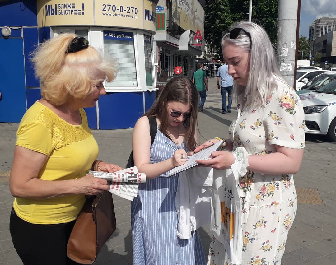 Пикеты проходят в людных местах. Один из них состоялся напротив здания краевой администрации, другой — рядом со входом в администрацию города, третий – на углу улиц Ставропольская и Стасова.