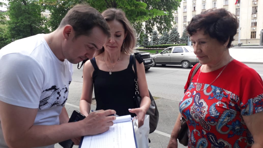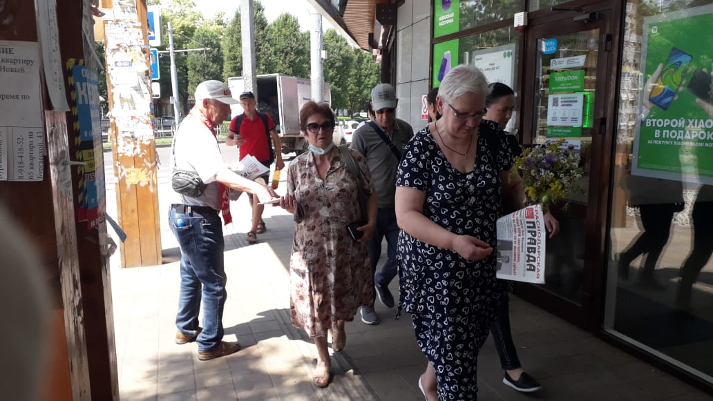 Одновременно идет сбор подписей граждан под требованиями сохранить стратегическое производство. Также активисты-пикетчики: А.И. Карих, В.С. Логвиненко, О.Н. Курышев – распространяют среди горожан информационные партийные материалы.