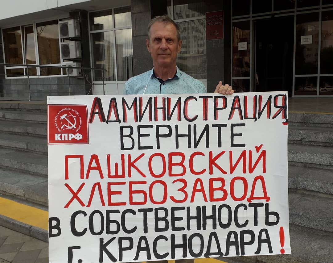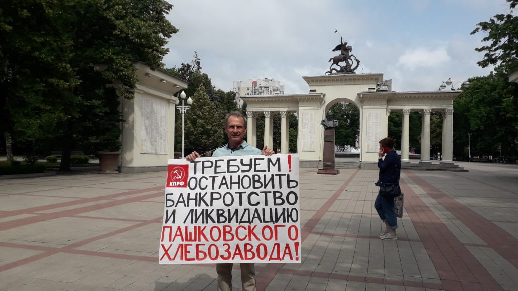 В последние дни по инициативе коммунистов Карасунского местного отделения КПРФ г. Краснодара (первый секретарь Комитета – Г.И. Затеева) и сторонники партии проводят одиночные пикеты в защиту Пашковского хлебозавода и в поддержку его коллектива, против передачи предприятия в частные руки.