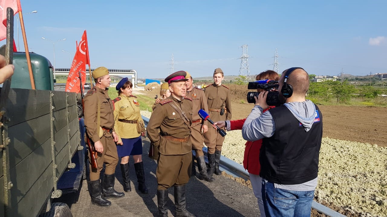 Среди них – в числе первых — была образованная из автомобилей времен Великой Отечественной войны колонна под знаменами Победы и флагами с символикой СССР. В состав экипажей этого красного автопробега входили представители города-героя Новороссийска: активисты горкома КПРФ (первый секретарь — В.В. Пронькин) и беспартийные патриоты.