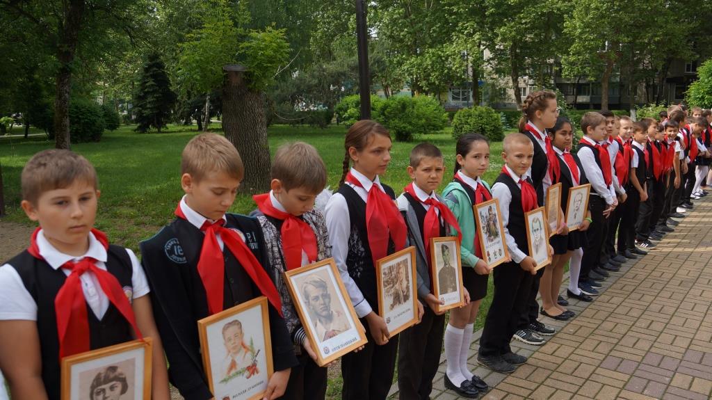 Торжественная линейка прошла в центральном парке Белореченска у памятника В.И. Ленину. В одном строю вместе с нынешними пионерами – портреты пионеров-героев.