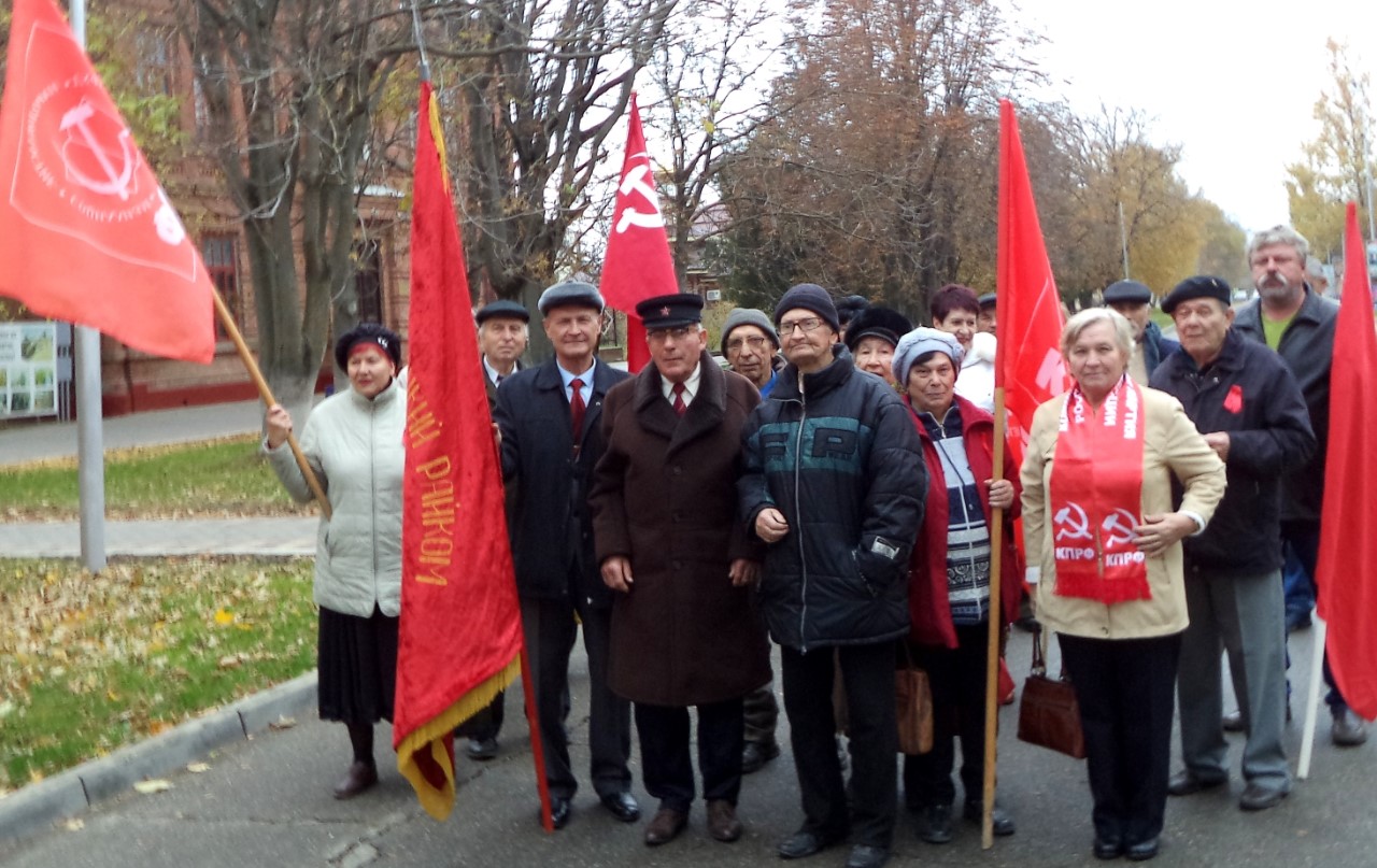 Коммунисты Приморско-Ахтарска 7 ноября в центре города поставили красную палатку, установили флаги и транспаранты и распространяли среди жителей города газету «Правда», а также поздравительные открытки.