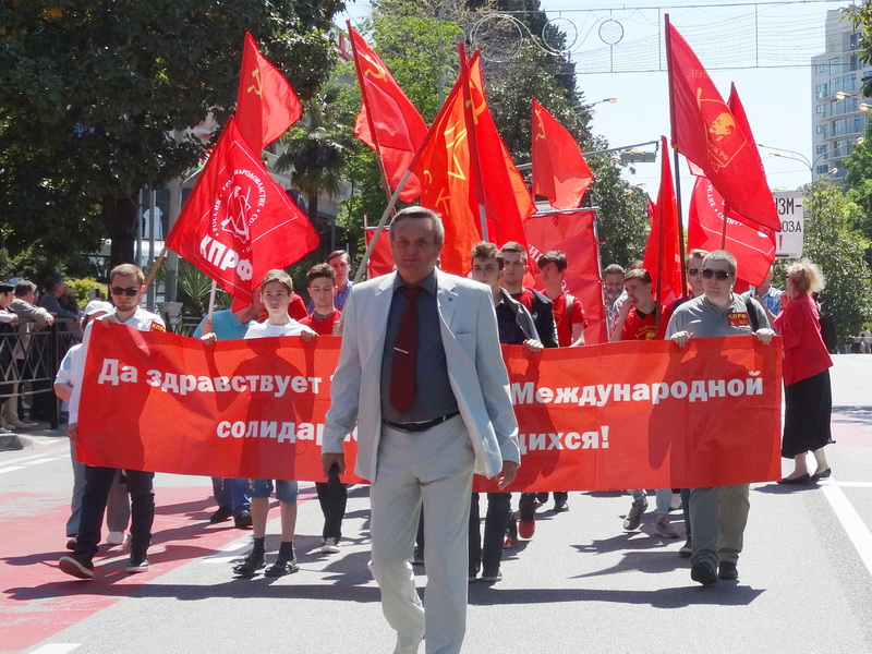 В Краснодаре 1 мая прошла демонстрация. Многочисленная колонна, расцвеченная красными транспарантами, флагами, маленькими флажками с символикой КПРФ двигалась по главной улице краевого центра. Впереди колонны ехала грузовая машина с громкоговорителем. На всю улицу звучали первомайские призывы и песни советского времени. Под звуки духового оркестра колонна коммунистов, их сторонников, включая делегации из районов края, а также активистов движения обманутых дольщиков, проследовала по улице Красной. Рядом с Музыкальным театром состоялся митинг, на котором выступили руководители краевого отделения КПРФ, депутаты-коммунисты, комсомольцы, активисты Союза Советских офицеров.