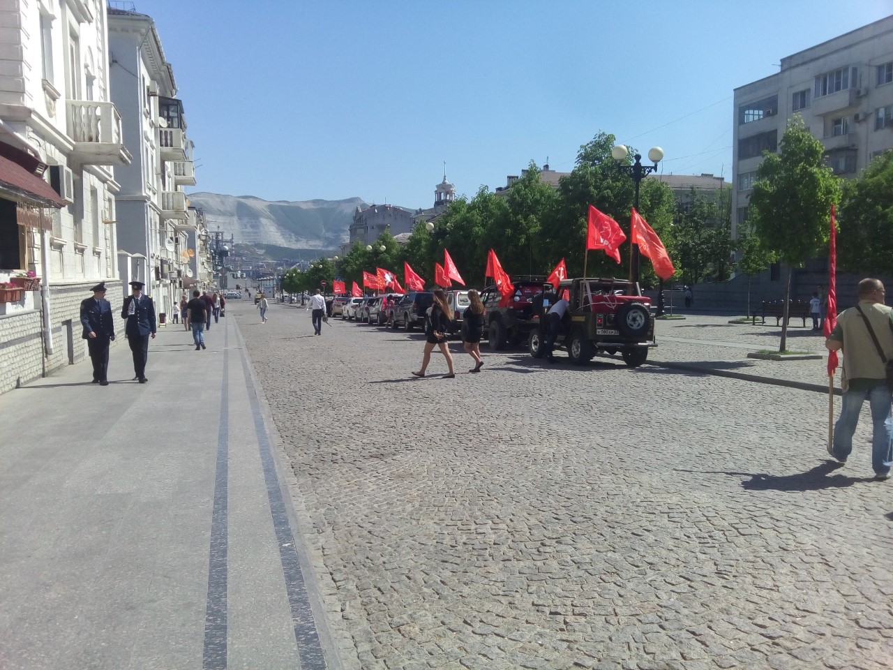 Группа активистов прошла со знаменами КПРФ и Победы по новороссийским улицам, а также был проведен красный автопробег, в котором приняло участие несколько автомобильных экипажей.