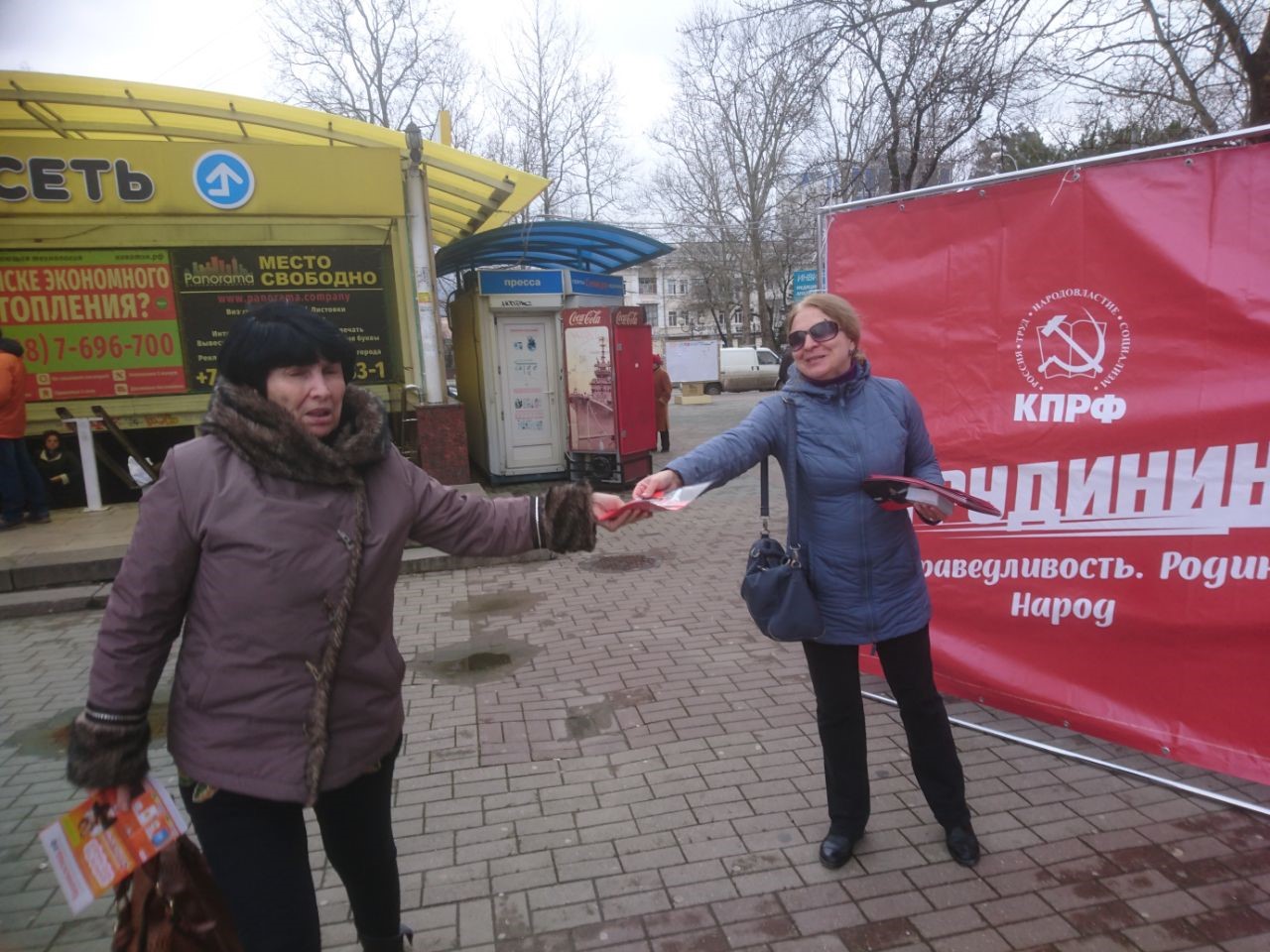 В городе-герое Новороссийске активисты местного отделения КПРФ и беспартийные сторонники партии проводят уличную агитацию за народного кандидата в Президенты России П. Грудинина.