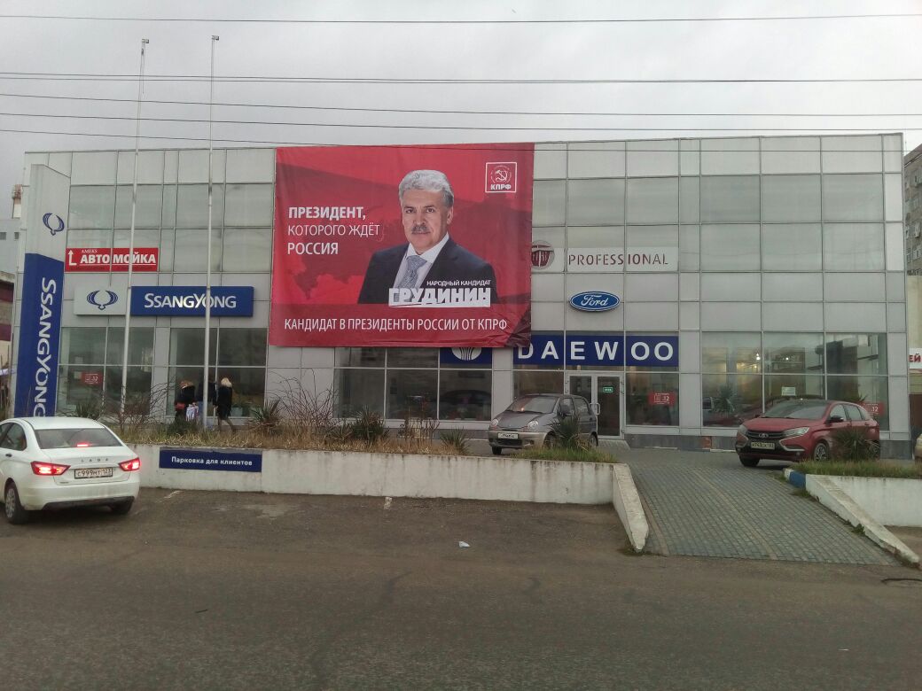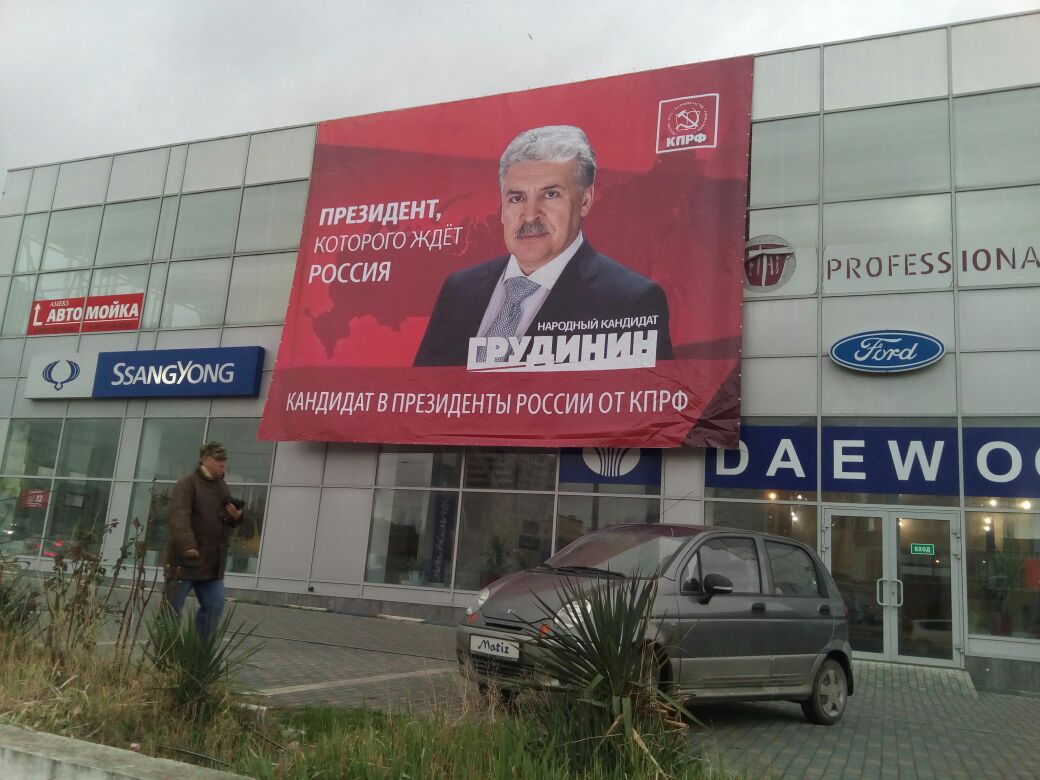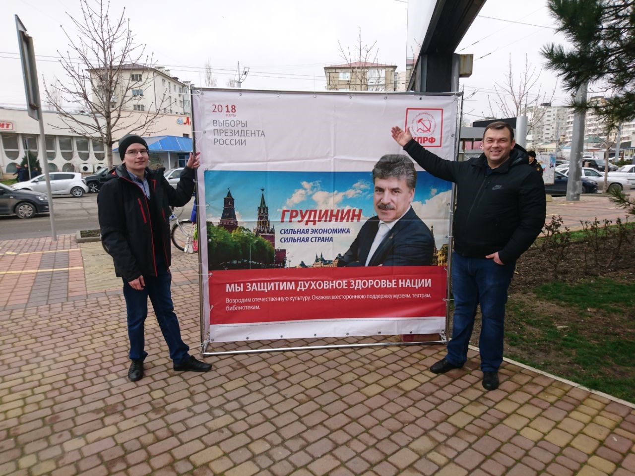 В Краснодарском крае: в Краснодаре, Новороссийске, Белореченске и других городах — каждый день появляются новые баннеры и плакаты в поддержку Павла Грудинина, кандидата, выдвинутого КПРФ и поддержанного всеми левыми, народно-патриотическими силами.