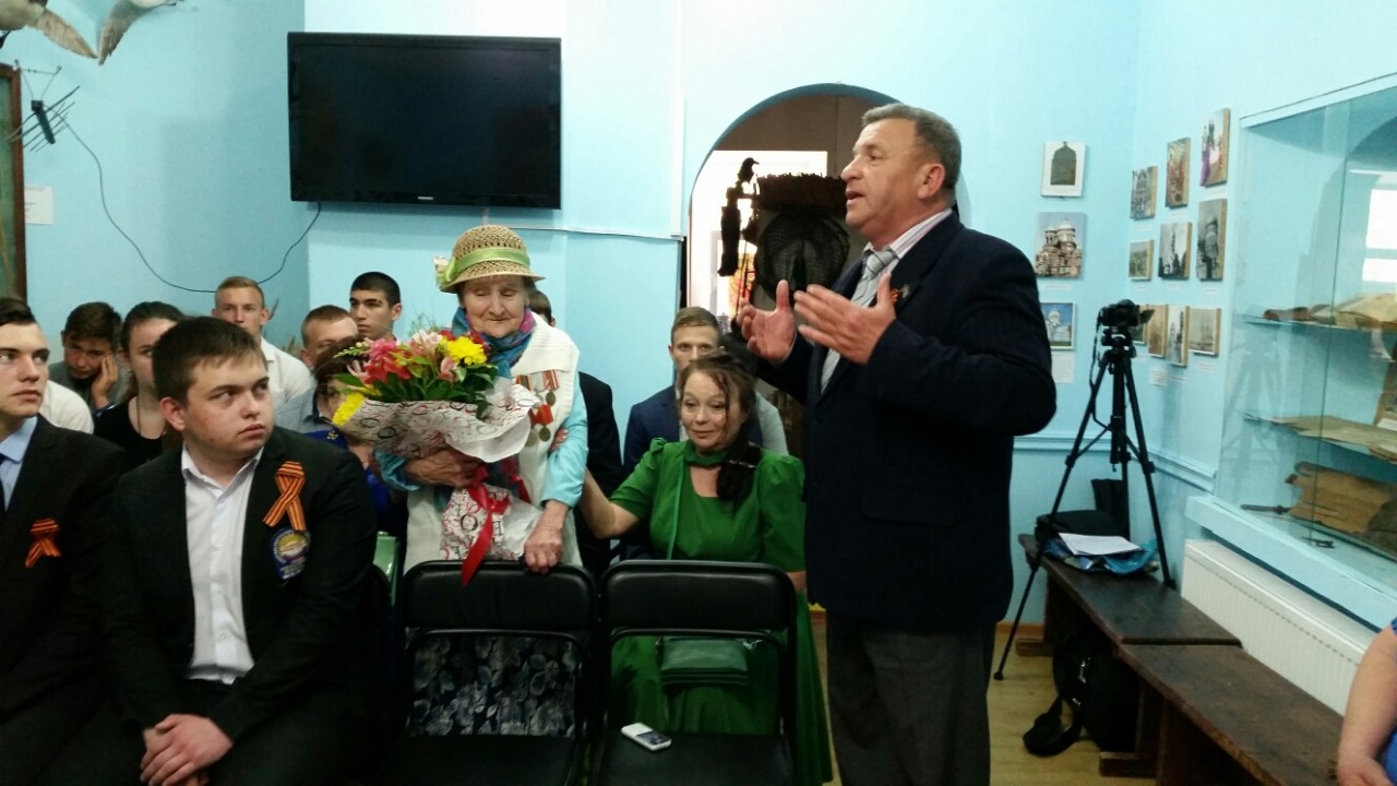 Председатель районного совета ветеранов В.Ф. Простихина, сын полка Д.И. Ерёмин, ветераны партии и комсомола, ветеран войны, коммунист В.А. Плотников, юнармейцы из техникума «Знание», жена героя Раиса Семёновна — вот далеко не полный перечень всех, кто пришел в этот день в музей.