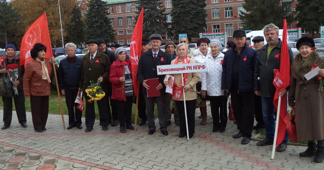 В день 100-летия Великой Октябрьской Социалистической Революции в центре станицы Брюховецкой у памятника В.И. Ленину активисты КПРФ провели митинг, посвященный этой знаменательной дате.
