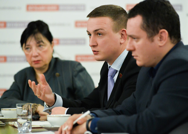 От КПРФ на «круглом столе» выступали молодые коммунисты: Иван Жилищиков, член Бюро крайкома партии, помощник депутата Госдумы Н.И. Осадчего, и член краевого Комитета Александр Сафронов.