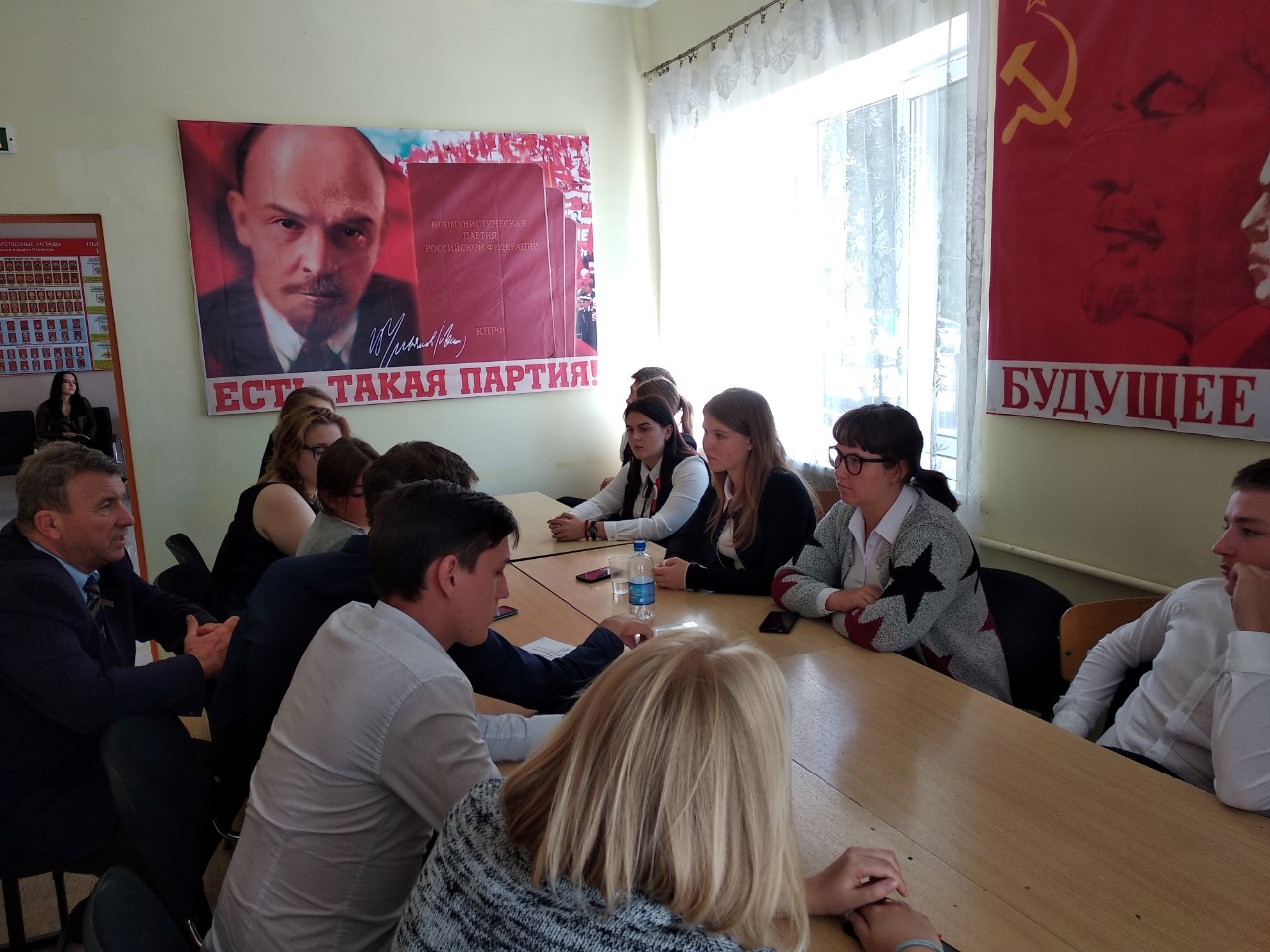 Встречу открыл первый секретарь райкома КПРФ, депутат районного Совета А.М. Лымарь. Он рассказал об исторической роли комсомола и о нравственном облике коммуниста, подчеркнув, что Ленинская молодежь всегда была образцом и примером для остальных.