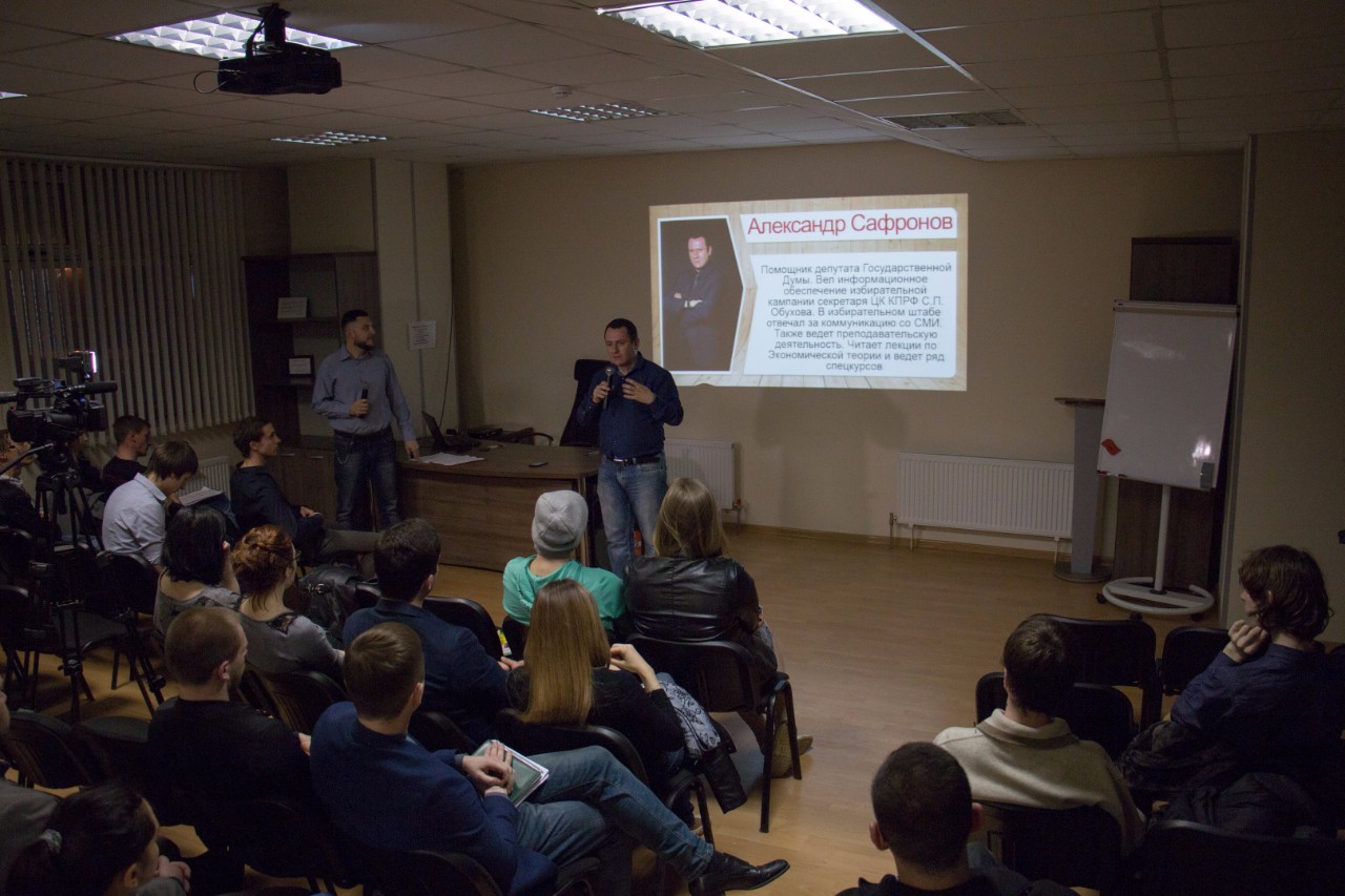 Зал, где проходила презентация центра для его будущих слушателей, был полон. Вел мероприятие молодой коммунист Александр Вергелес, который рассказал о том, как появилась идея создать «Альтернативу».