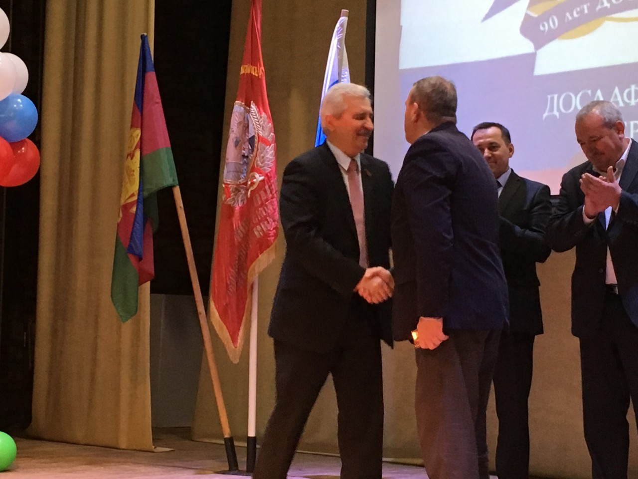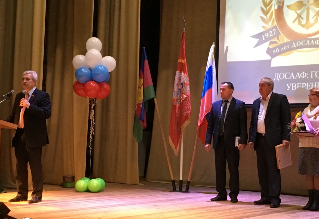 Работникам этой общественной организации были вручены почетные грамоты и памятные медали от ее центральных и региональных руководящих органов. С приветствием выступил и Николай Осадчий. Он вручил грамоту КПРФ председателю районной организации ДОСААФ А. Паршину, а в ходе выступления отметил хорошую работу в области военно-патриотического воспитания молодежи в районе и подчеркнул, что важную роль в этом деле играет ДОСААФ, созданная в Советское время. Также депутат рассказал об усилиях КПРФ и ее фракции в Госдуме по укреплению обороноспособности страны и организации гуманитарной помощи населению ДНР и ЛНР.