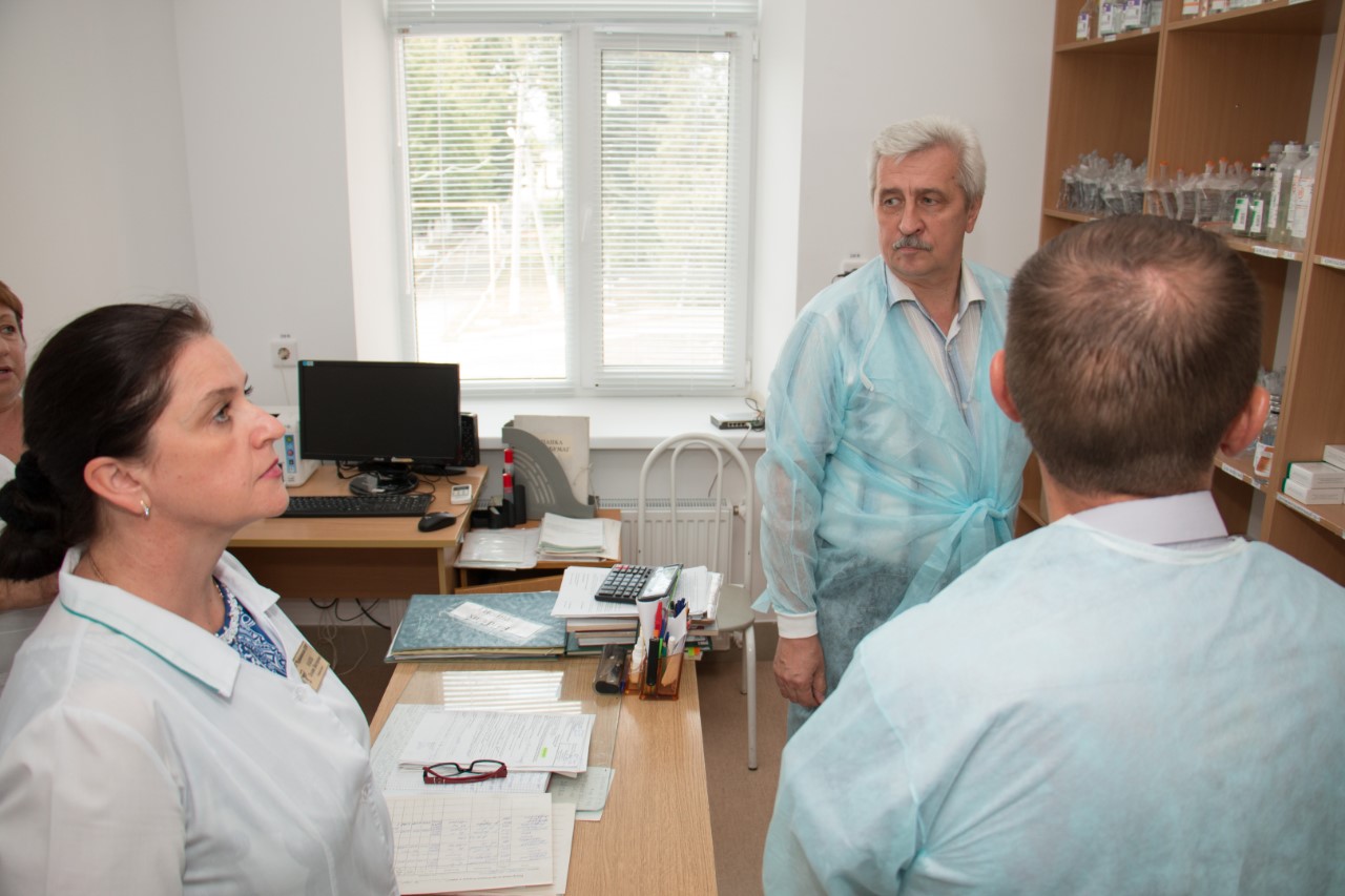 Кроме того, Николай Осадчий посетил Центральную районную больницу, познакомился с ходом ремонта хирургического отделения, а затем встретился с коллективом медицинских работников. Он рассказал об основных направлениях работы думского Комитета по охране здоровья, о своем участии в подготовке новых законопроектов: об условиях реорганизации и ликвидации медицинских учреждений в сельской местности, о защите медицинских работников от нападений, о «телемедицине», о «курортном сборе» и других. Были затронуты проблемы финансирования здравоохранения, соотношение бюджетной и страховой медицины, а также раскрыты некоторые предложения КПРФ по увеличению доходной части федерального бюджета (в частности, введение прогрессивной шкалы НДФЛ и госмонополии на алкоголь) и установлению справедливых межбюджетных отношений между центром и регионами.