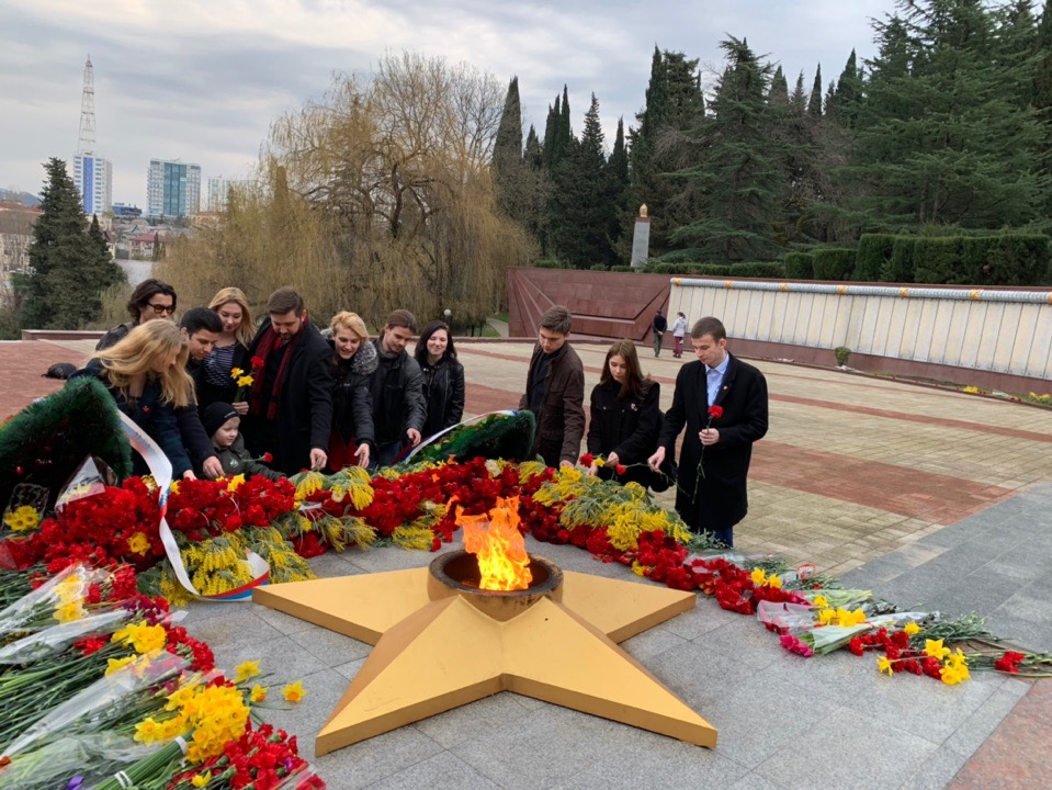 Они вспомнили некоторые страницы истории Красной Армии и обсудили современные общественные проблемы, а затем отправились к мемориальному комплексу, чтобы возложить там цветы к Вечному Огню. Одной из юных жительниц Сочи был вручен комсомольский билет.