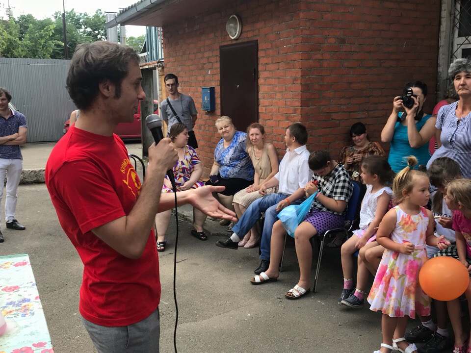 Для детей-инвалидов было организовано представление и разнообразные игры. Всем участникам встречи была донесена интересная информация о Советском Союзе и о празднике Дня России. Все вместе: комсомольцы, дети, родители и педагоги – с удовольствием исполняли песни времен Революции и советского строительства.