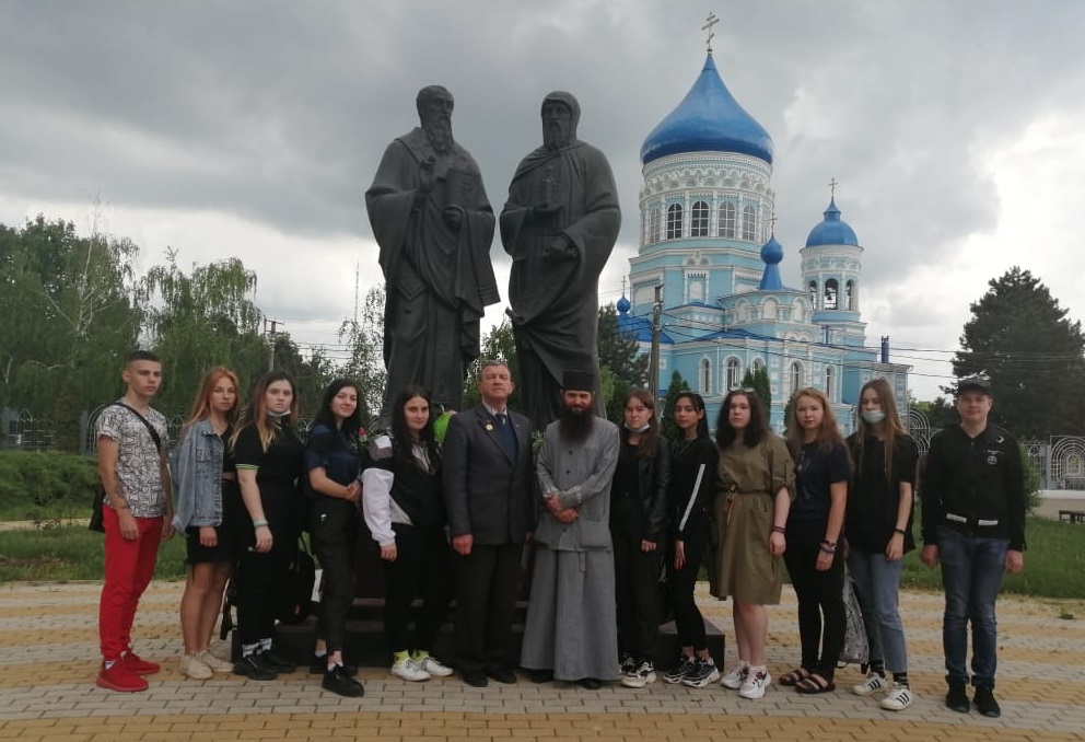 Занятие у памятника Кириллу и Мефодию вел директор техникума, первый секретарь райкома КПРФ, депутат районного Совета А.М. Лымарь. Интересным был рассказ священника – отца Георгия Рогальского. А потом к памятнику были возложены цветы.