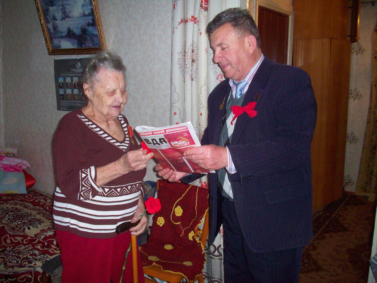 И в тот же день первый секретарь Каневского райкома КПРФ А.М. Лымарь побывал в гостях у ветерана Великой Отечественной войны, защитницы города-героя Ленинграда, ветерана партии М.В. Чупрасовой и вручил ей памятную юбилейную медаль.