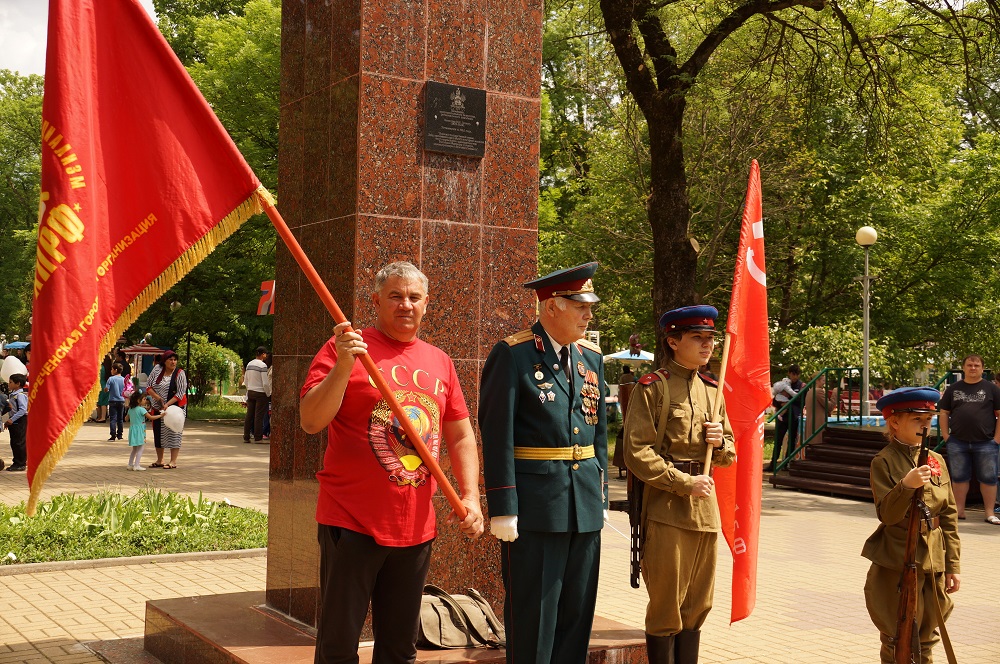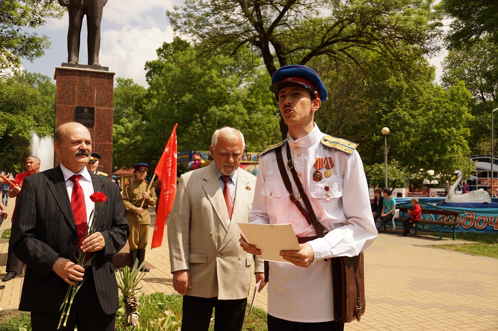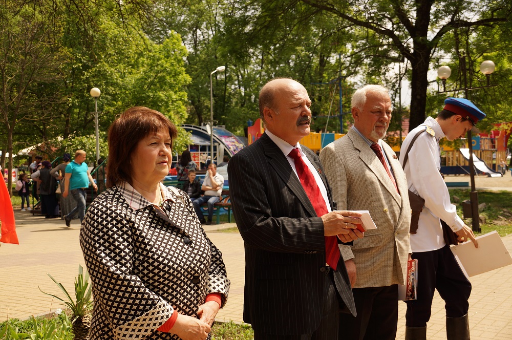 Митинг открыл первый секретарь райкома КПРФ, член Бюро краевого Комитета партии, руководитель фракции КПРФ в районном Совете Н.В. Боровков. Он поздравил собравшихся с праздником Первомая, а верующих – с праздником Светлой Пасхи, озвучил поздравления Председателя ЦК КПРФ Г.А.Зюганова и лидера коммунистов Кубани Н.И.Осадчего.