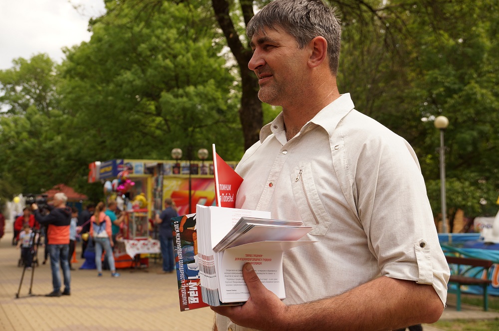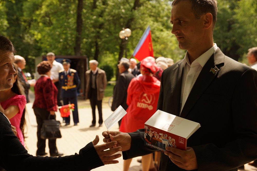 В ходе акции партийные активисты распространили большое количество экземпляров спецвыпуска газеты "Правда" и поздравительные открытки руководителя фракции КПРФ Заксобрания края, первого секретаря крайкома Н.И. Осадчего.