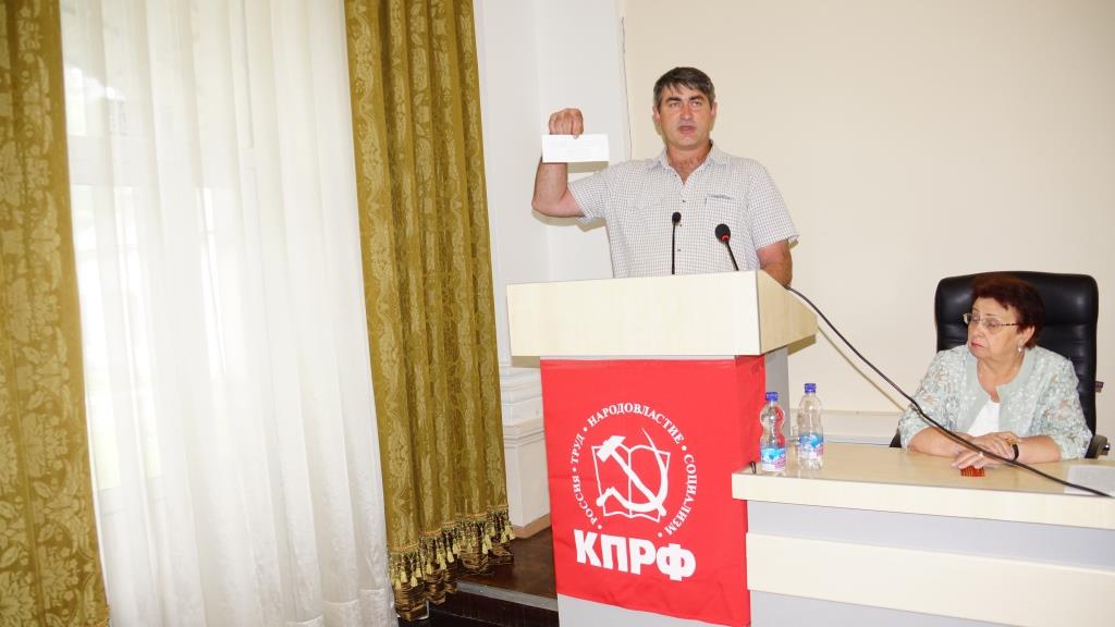 Тайным голосованием делегаты избрали новый состав районного Комитета в количестве 23 коммунистов и трёх кандидатов в члены райкома, а в новый состав контрольно-ревизионной комиссии избрано пять человек. Также тайным голосованием избраны, согласно норме представительства, пять делегатов на XXIII отчетно-выборную Конференцию Краснодарского краевого отделения КПРФ: это – Н.И. Осадчий, А.И. Топчий, О.Н. Беспалова, А.М. Тропин и Н.В. Боровков.