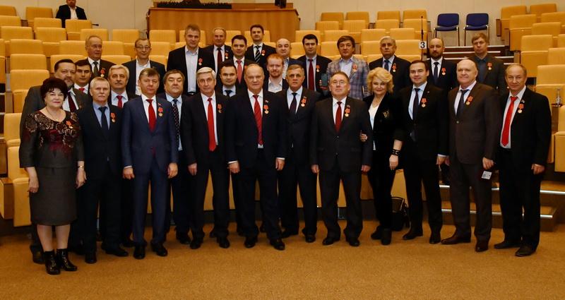Затем состоялась церемония награждения депутатов фракции памятными медалями ЦК КПРФ «100 лет Великой Октябрьской социалистической революции».