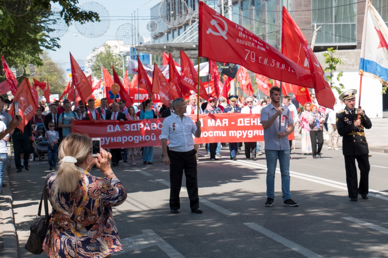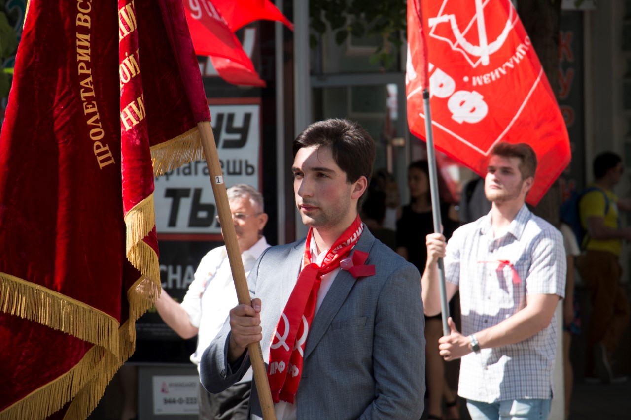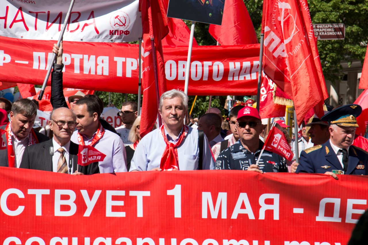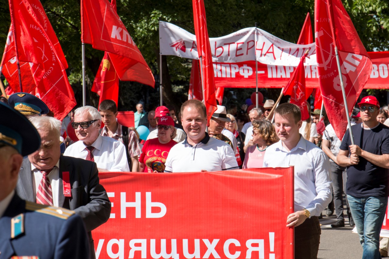 В голове колонны с 8-метровым баннером «Да здравствует 1-е мая – День международной солидарности трудящихся!» шли руководители краевого отделения КПРФ, коммунисты-депутаты разных уровней, молодые активисты партии и комсомольцы.