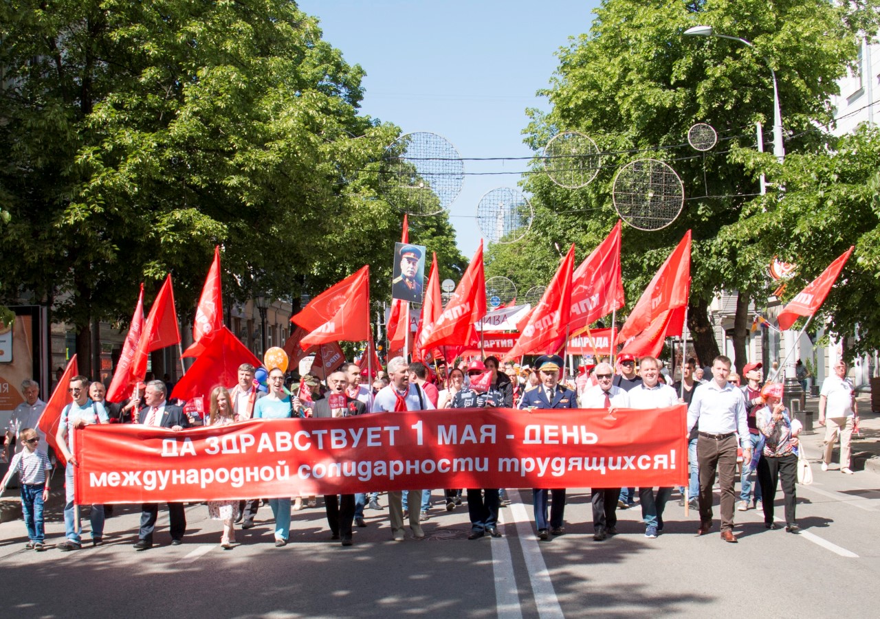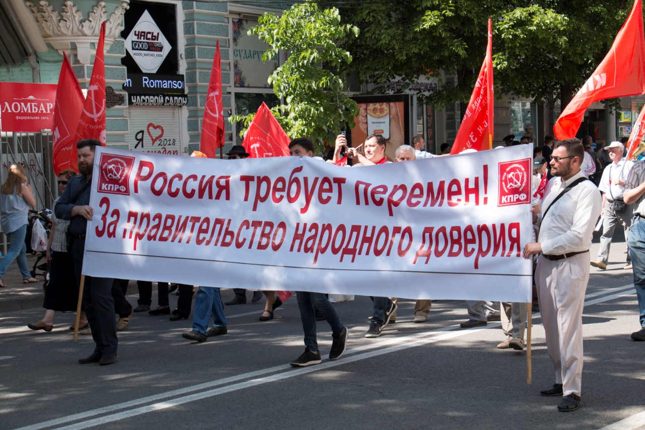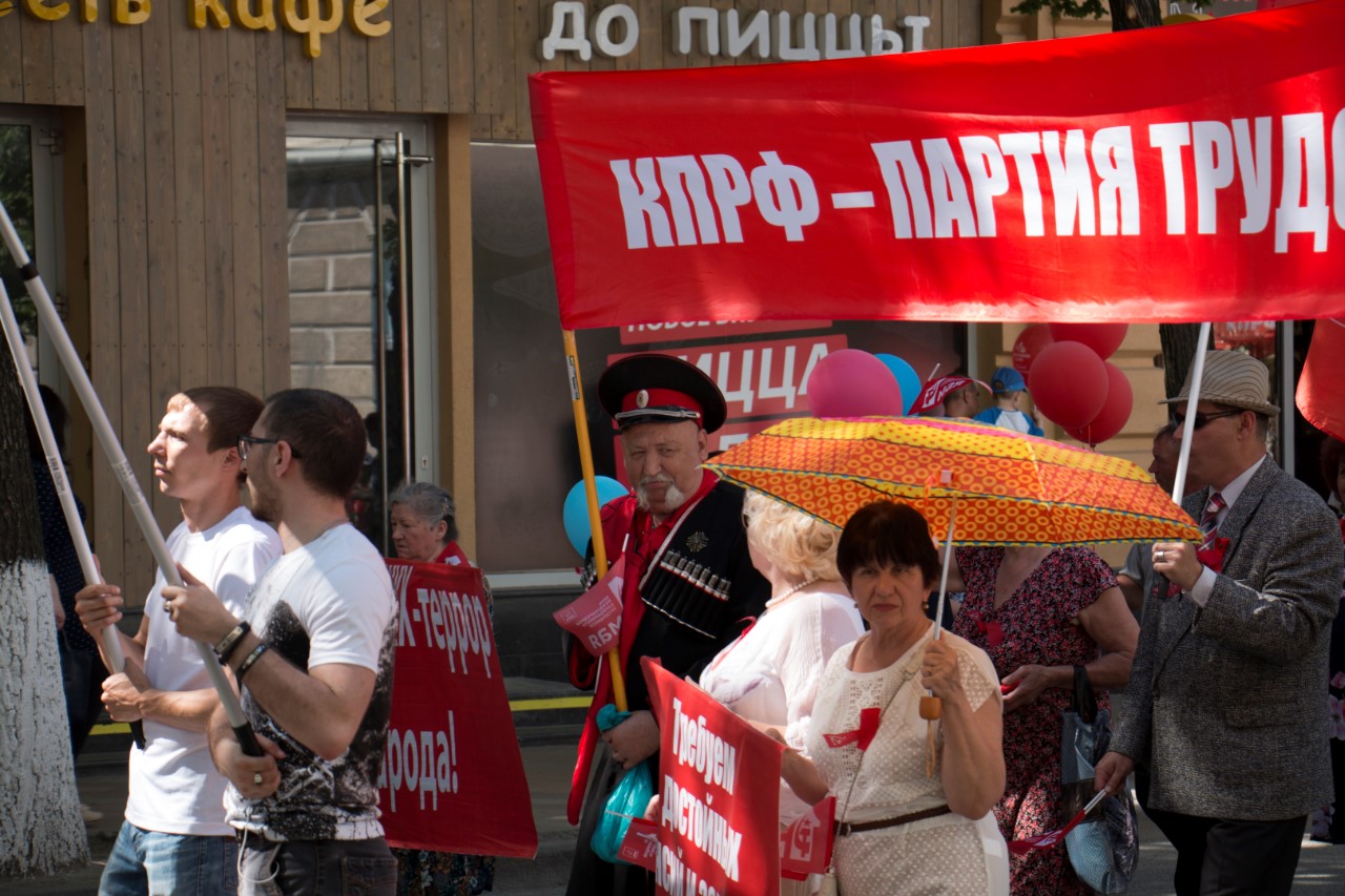 В голове колонны с 8-метровым баннером «Да здравствует 1-е мая – День международной солидарности трудящихся!» шли руководители краевого отделения КПРФ, коммунисты-депутаты разных уровней, молодые активисты партии и комсомольцы.