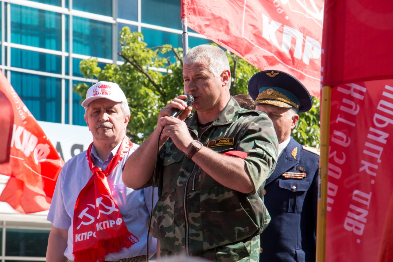 На пересечении улиц Красной и Орджоникидзе, рядом с Музыкальным театром состоялся митинг. Его открыл и вел секретарь краевого Комитета КПРФ, депутат Законодательного Собрания края Г.Д. Шабунин. От имени организаторов демонстрации и митинга он поздравил участников с праздником. А затем духовым оркестром был исполнен Государственный гимн.