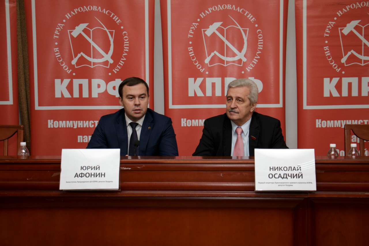 В краевом общественно-политическом центре состоялась пресс-конференция депутатов Госдумы, заместителя Председателя ЦК КПРФ Юрия Афонина и первого секретаря Краснодарского крайкома КПРФ Николая Осадчего.