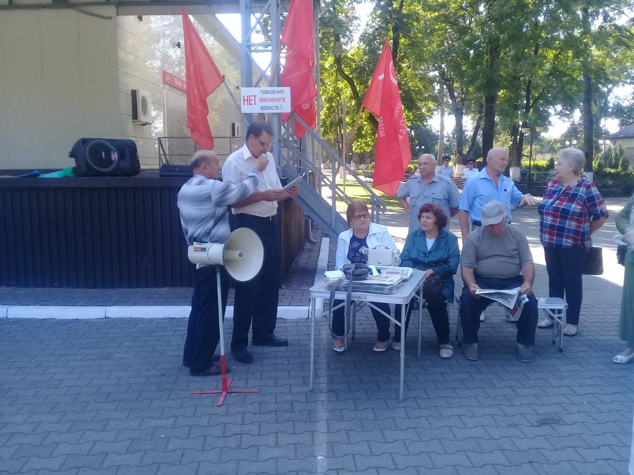 В Мостовском районе прошел митинг протеста – против повышения пенсионного возраста, увеличения налогов, роста цен на бензин и другие товары, в защиту социально-экономических прав населения. По ходу акции были распространены газеты «Правда», «Советская Кубань», «Советская Россия» и «Ленинское знамя».