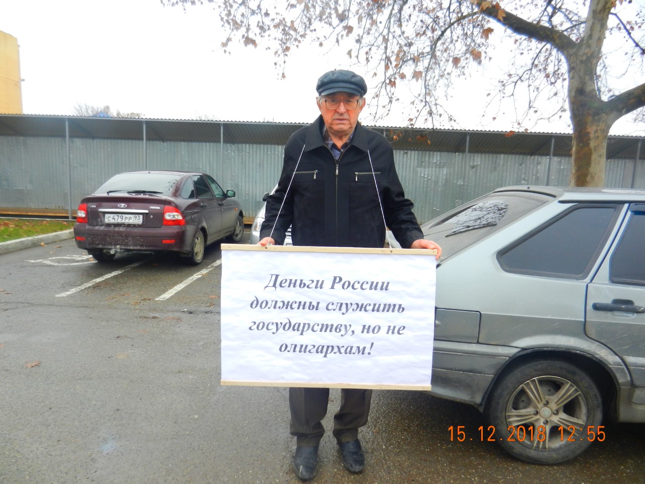 В рамках декабрьской Всероссийской акции протеста на центральных улицах Славянска-на-Кубани прошли одиночные пикеты.